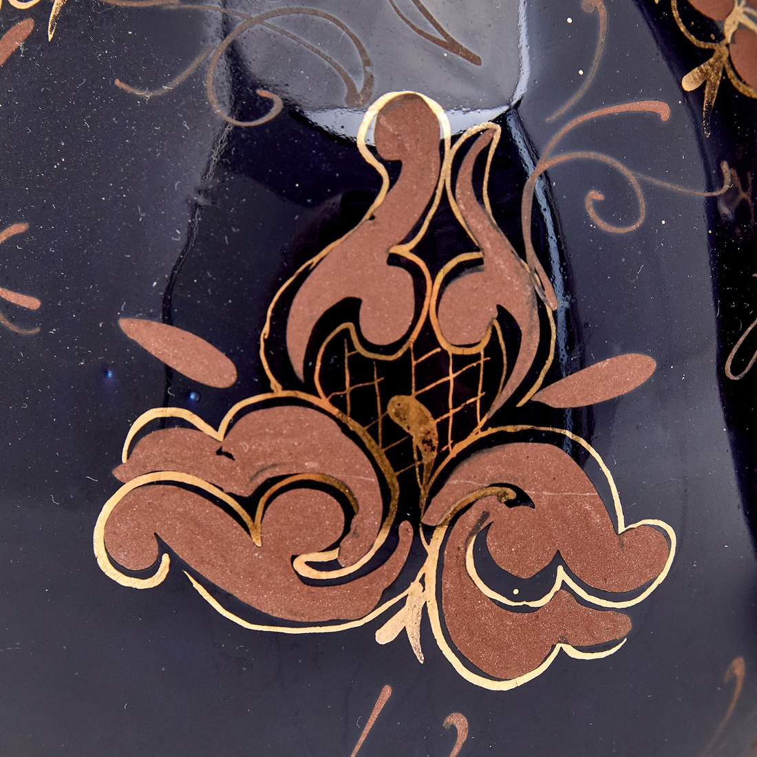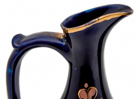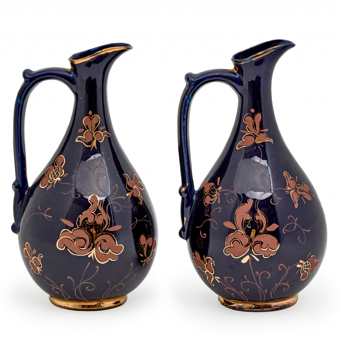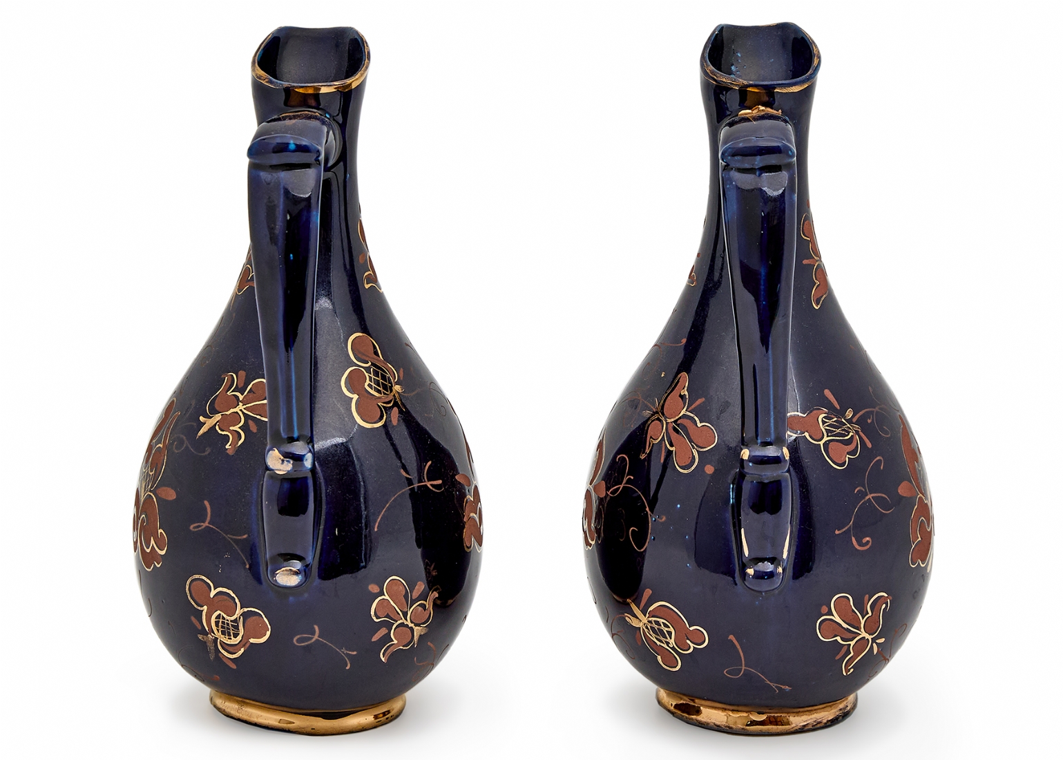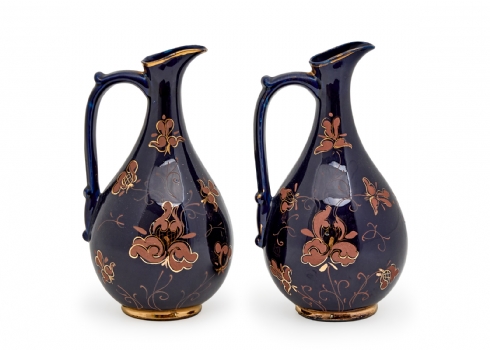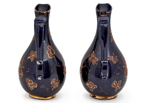 זוג קנקני פורצלן דקורטיביים מעוטרים בכחול קובלט עם עיטורי זהב