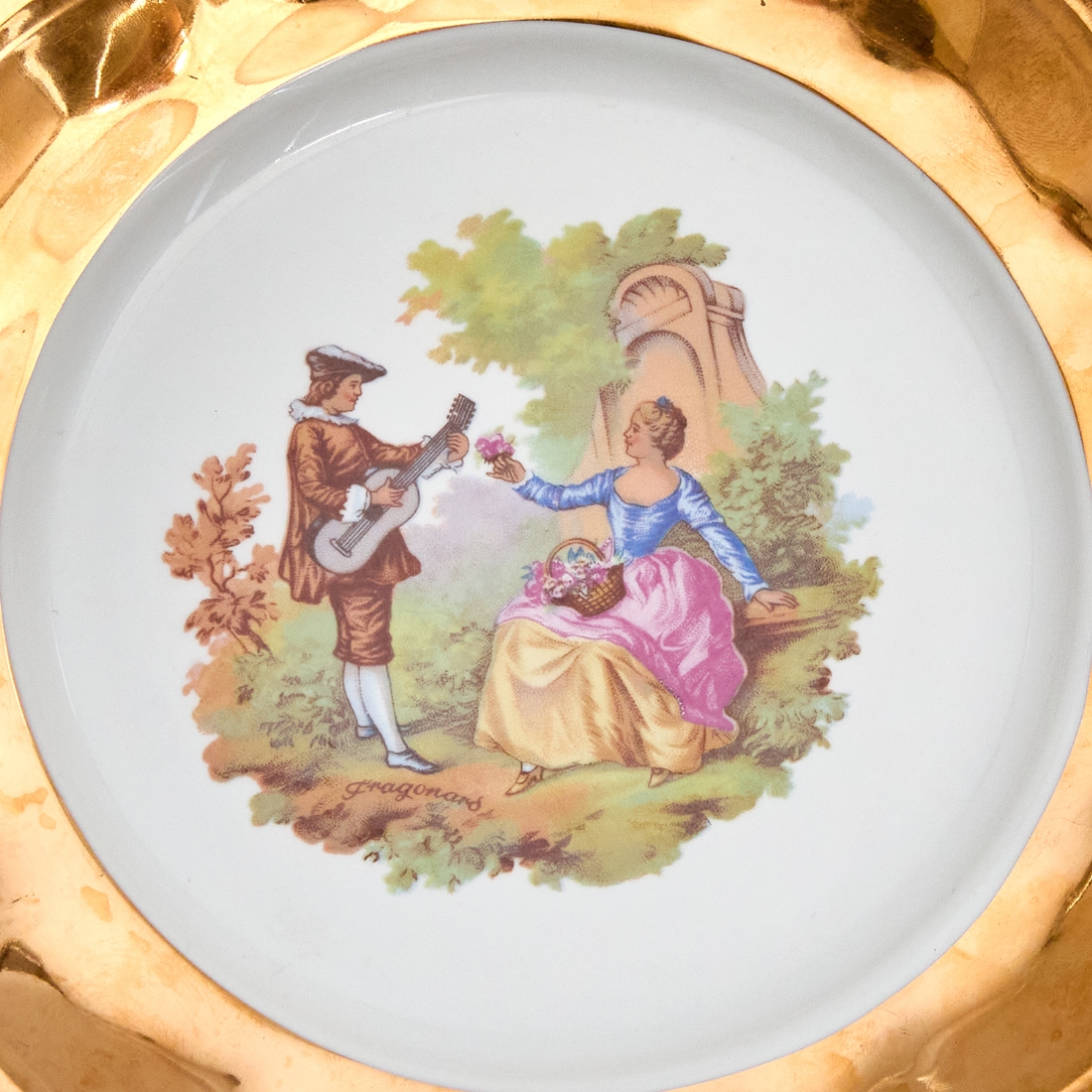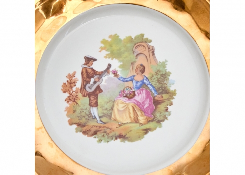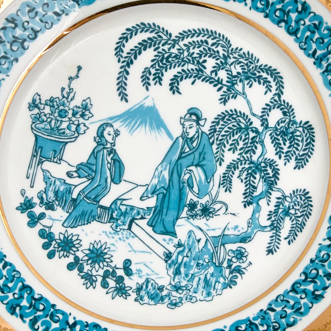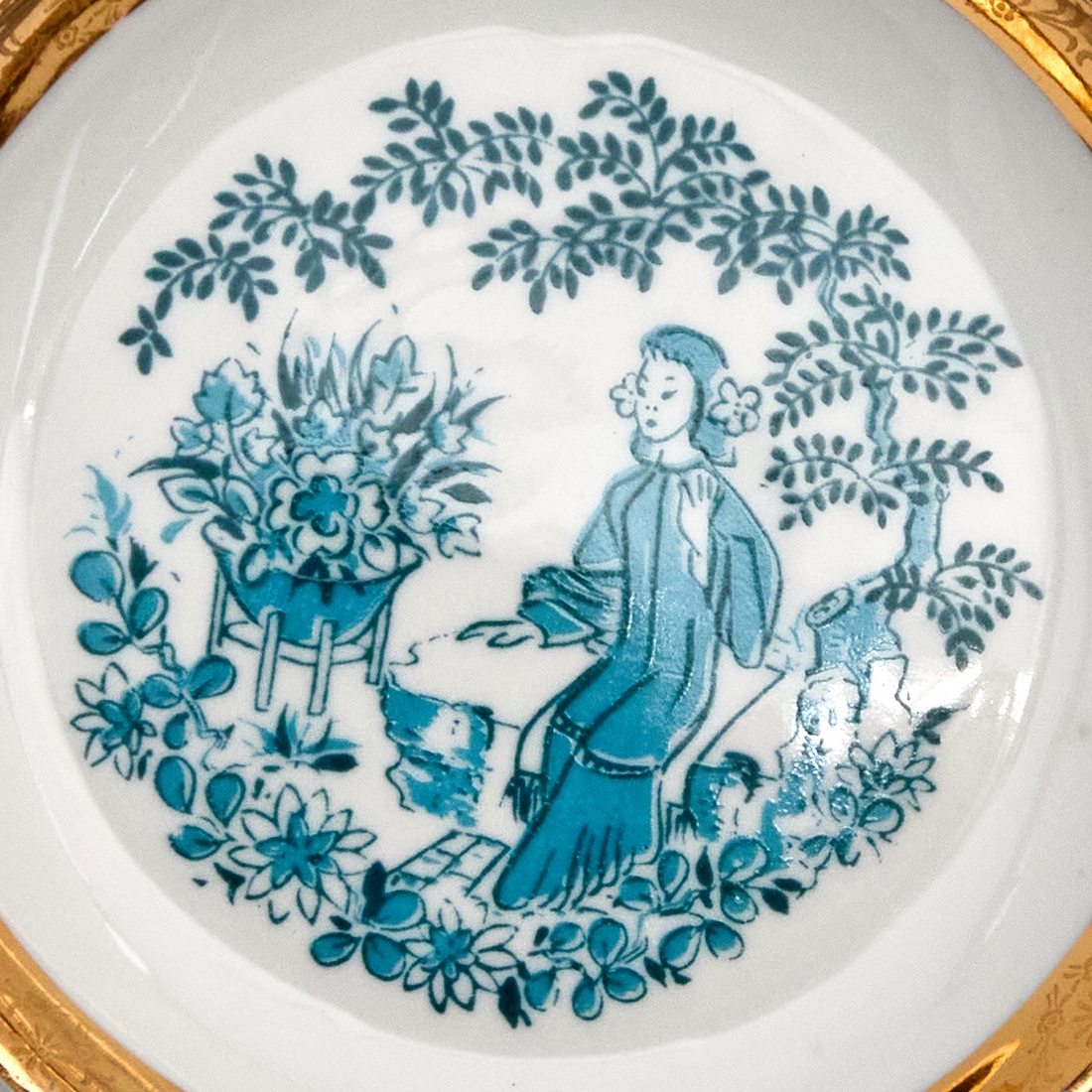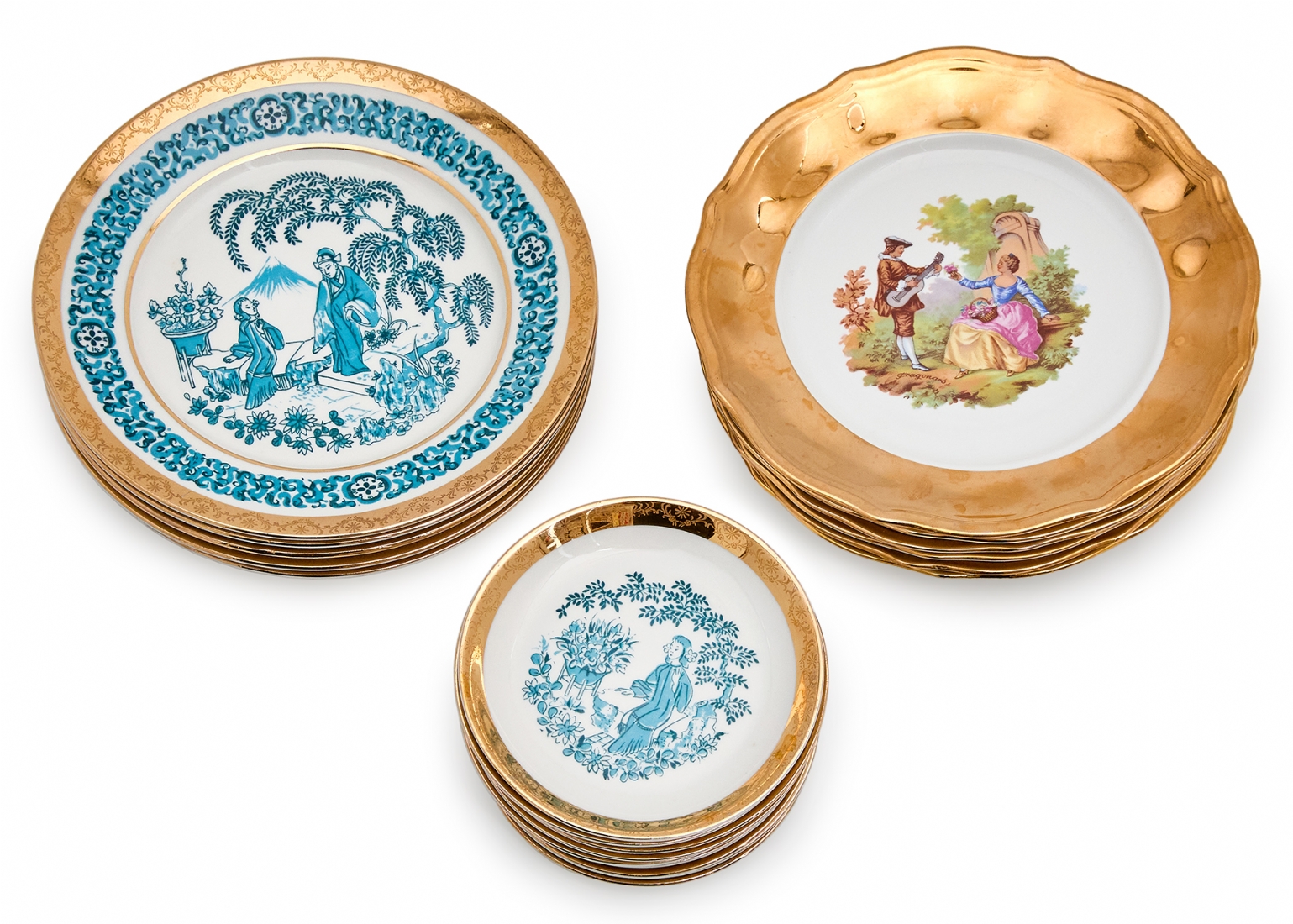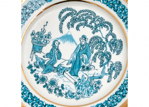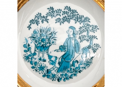 חלקי סט פורצלן סובייטי מעוטר באמייל תכלת וזהב חתום