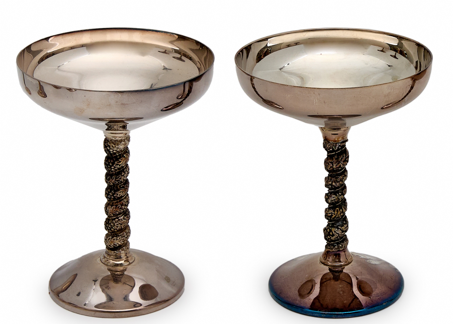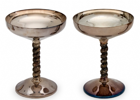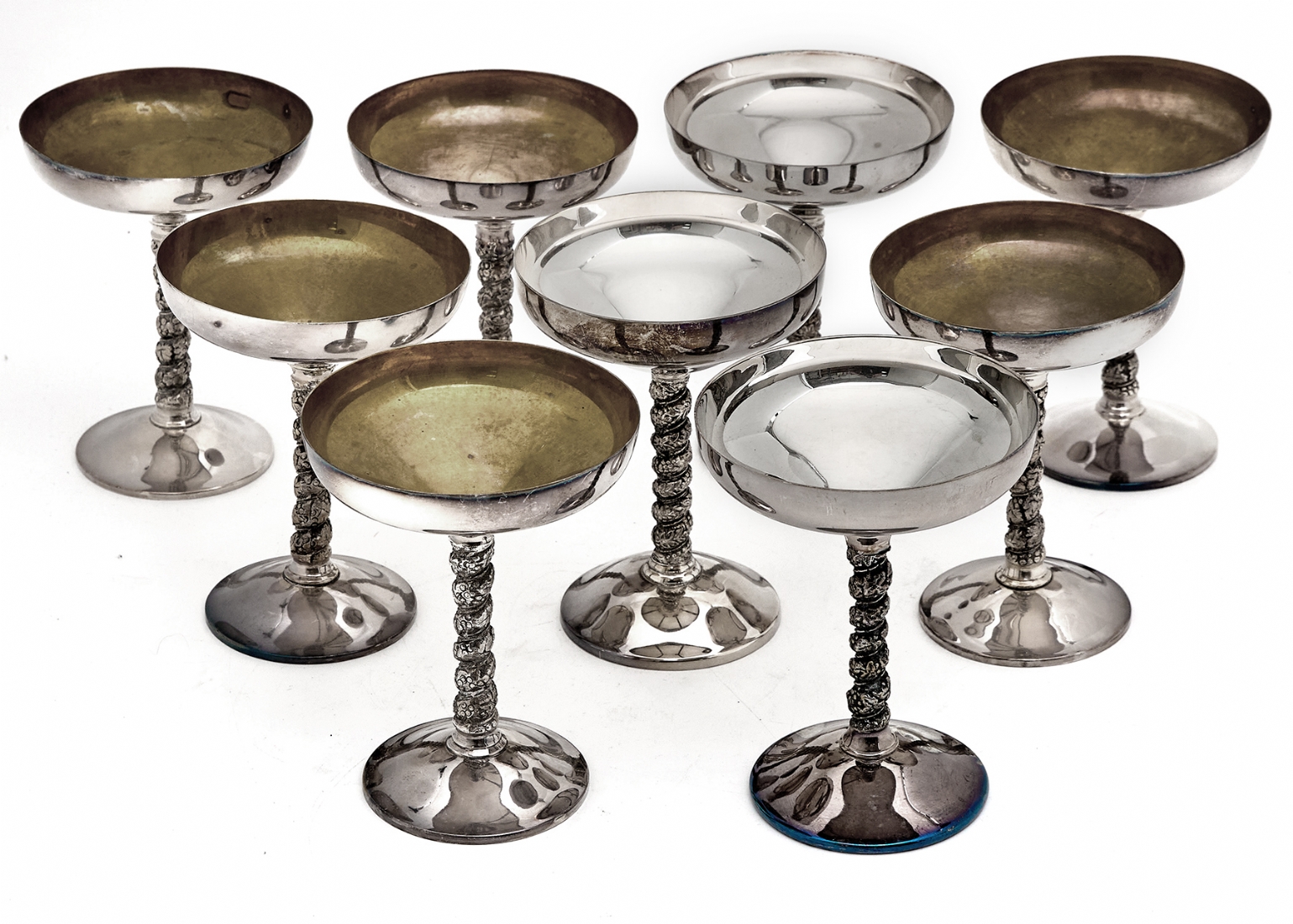 9 כוסות שמפניה עשויות מתכת ומצופות כסף חתומות