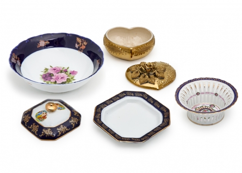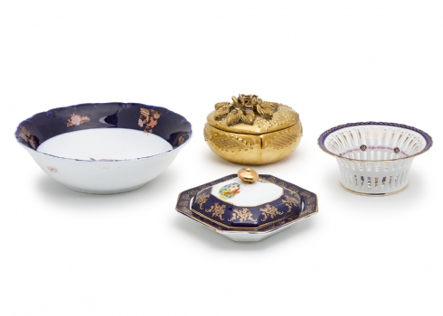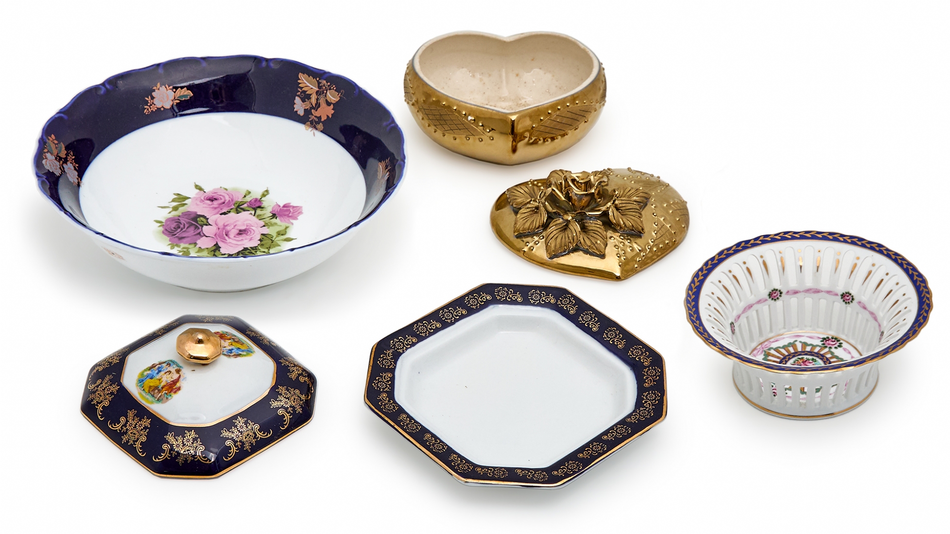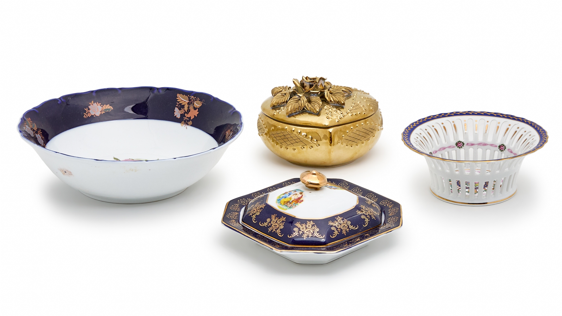 4 כלי פורצלן שונים, יצרנים ודגמים שונים, חתומים