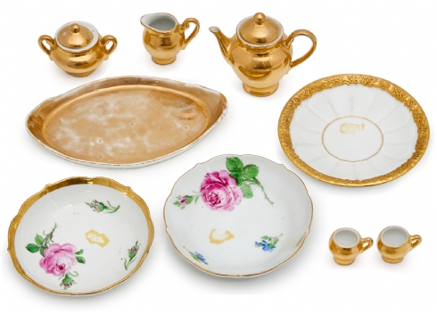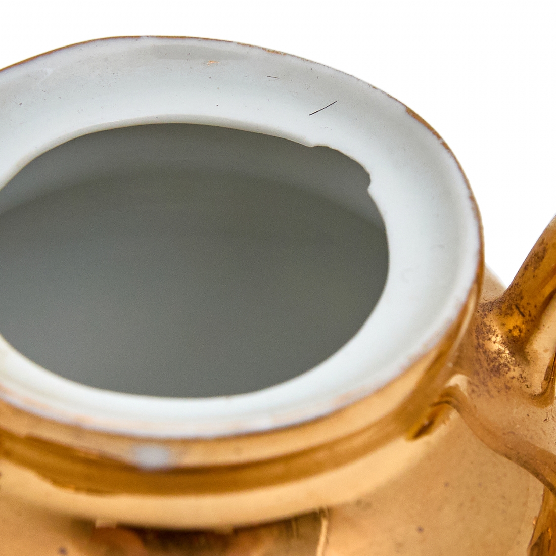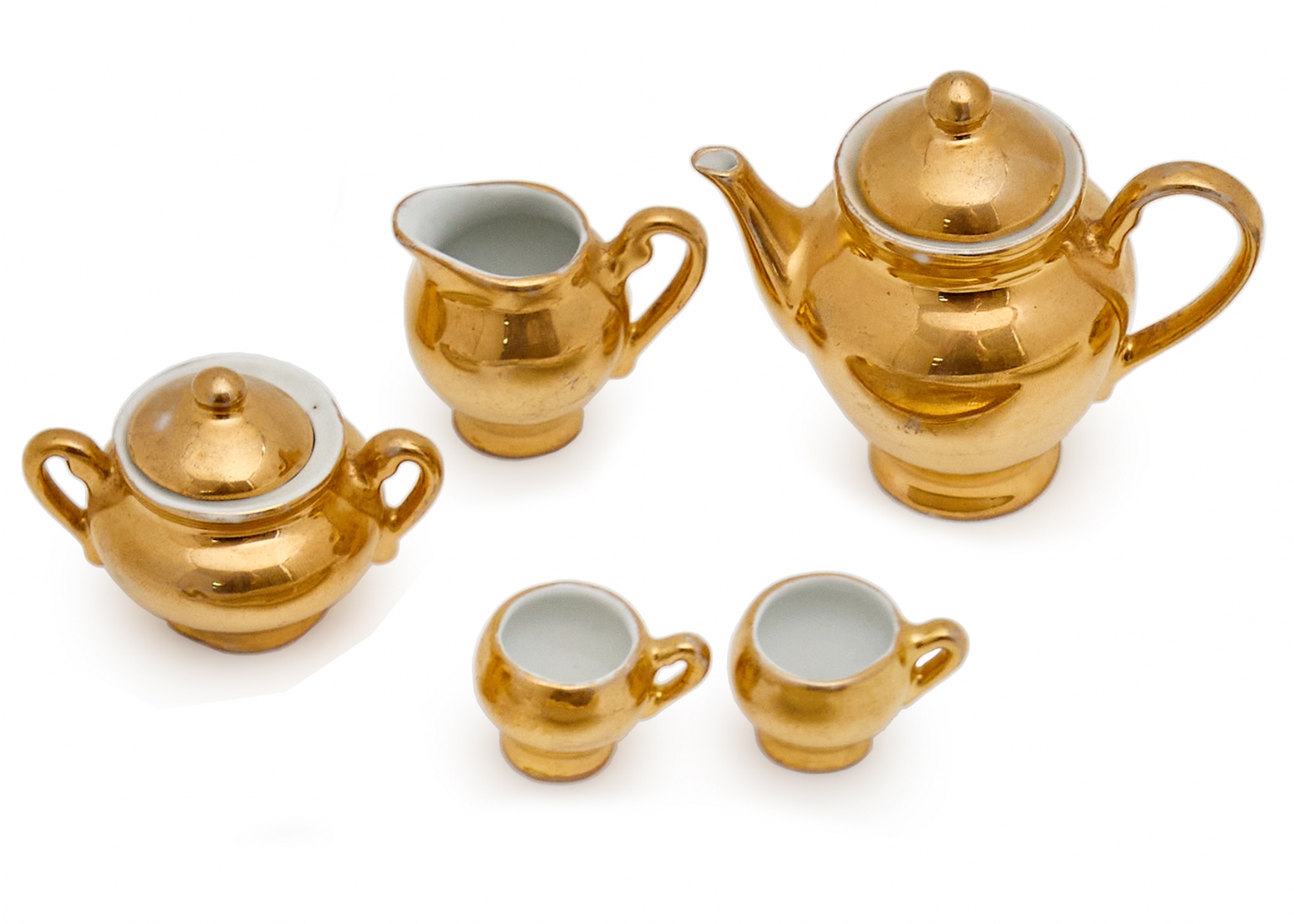 בנוסף סט קפה מינאטורי מעוטר זהב, גובה הקומקום: 8 ס"מ
