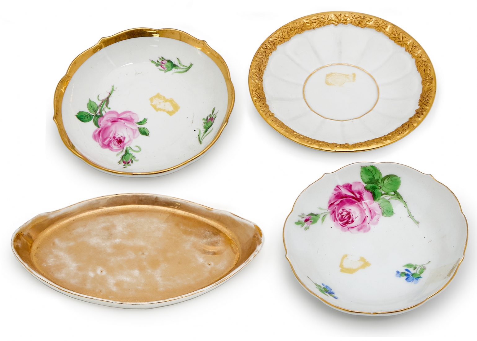 3 צלוחיות מייסן (Meissen), מעוטרות בציורי פרחים וזהב