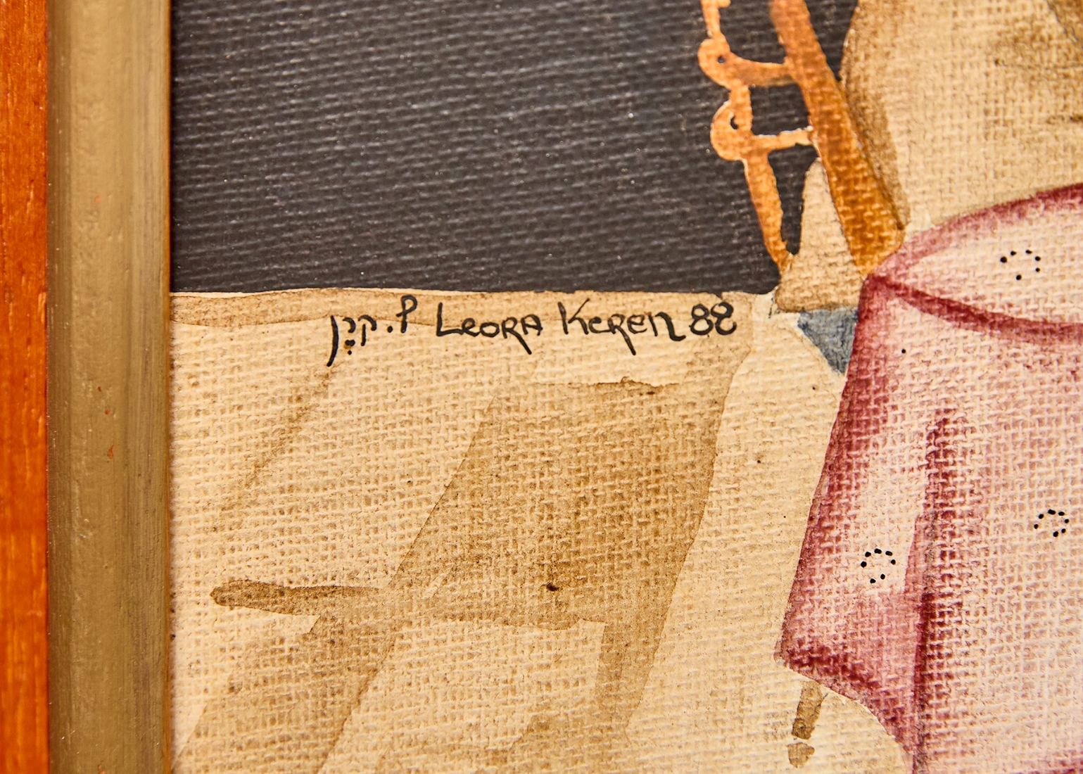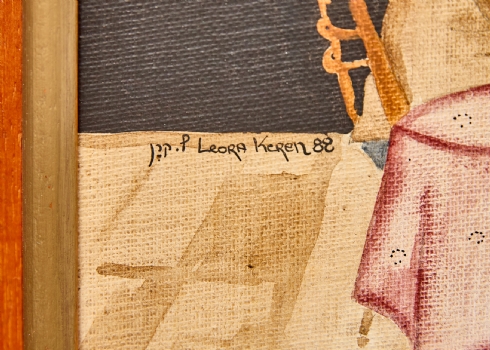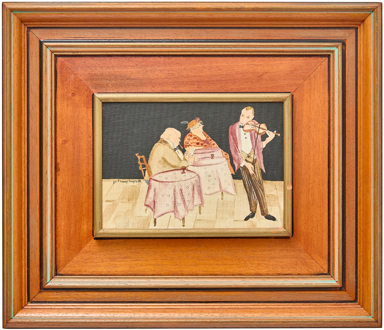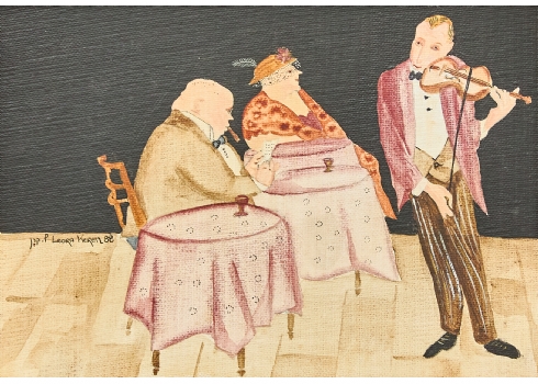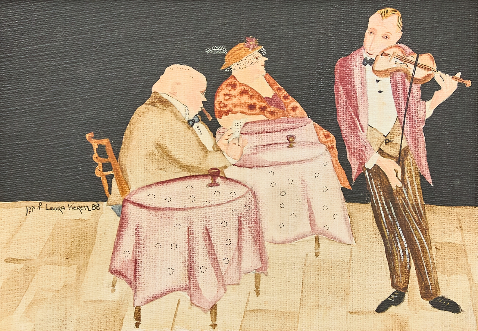 ליאורה קרן - 'כנר בבית קפה', שמן על בד צרפתי חתום ומתוארך 1988