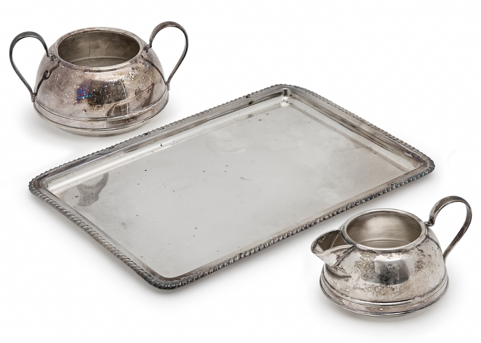 3 כלים עשויים מתכת מצופים כסף, חלקם חתומים