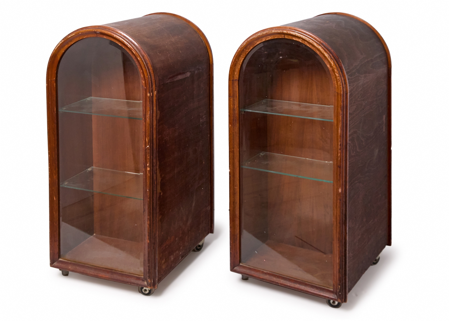 בעלת דלתות זכוכית ומדפי זכוכית פנימיים ושתי יחידות נפרדות
