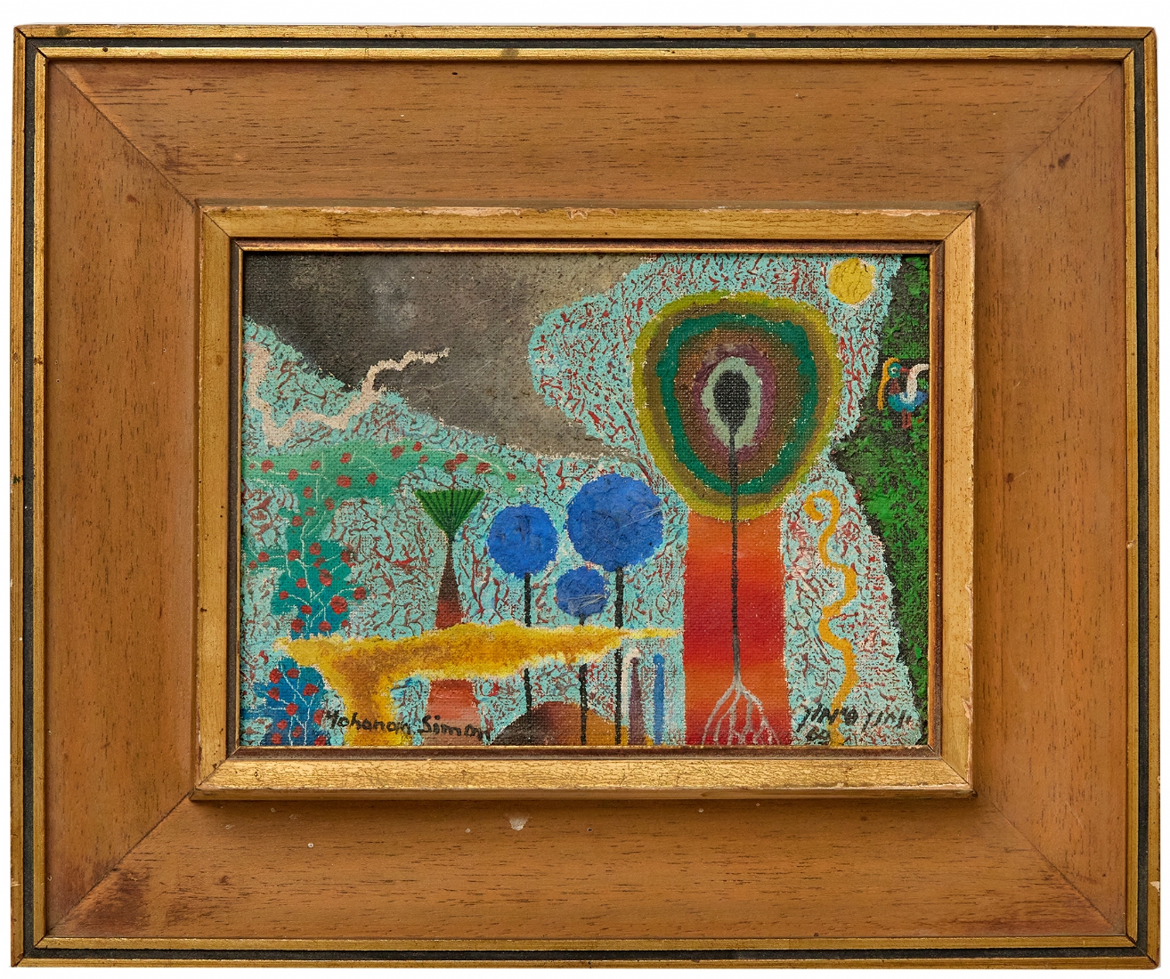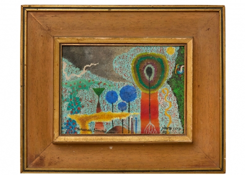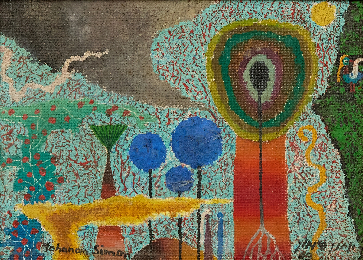 יוחנן סימון (Yohanan Simon) - 'נוף פסיכודלי' שמן על לוח, חתום ומתוארך: 1969