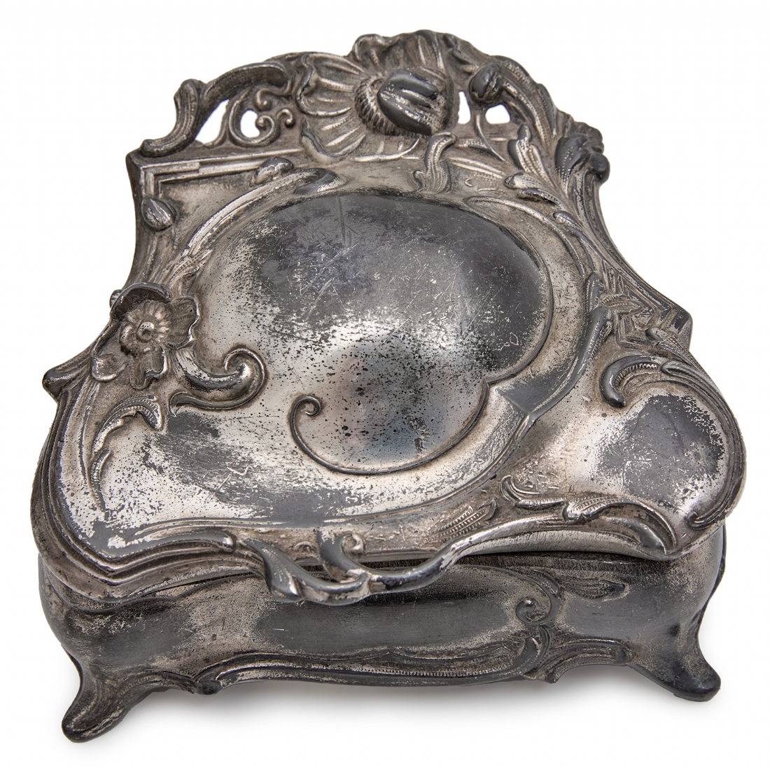 קנקן כסף אמריקאי לשתיה קרה קנקן כסף אמריקאי ישן למים קרים מתוצרת: 'POOLE' עשוי כסף 'סטרלינג' (Sterling) כלי אמריקאי עתיק מפואר ומרשים, מתוצרת: 'BARBOUR SILVER CO', עשוי מתכת מצופה כסף אגרטל ישן ואיכותי במיוחד עשוי קריסטל מלוטש ביד ושפה עליונה עשויה כסף כלי עתיק למי ורדים (Rosewater Sprinkler) מהמאה ה-19 כפי הנראה הודי בסגנון מוגולי לוט של 7 מזלגות כסף גרמנים עתיקים, חתומים: '12', משקל כולל: 326 גרם קערת רחצה צרפתית עתיקה וגדולה סט כלי הגשה אנגלי עתיק (ויקטוריאני) מפואר מסוף המאה ה-19 להגשת קפה ותה כד פורצלן ארט נובו מעוטר כסף (Silver Overlay Porcelain) על רקע קובלט כחול כהה דקנטר גרמני ארט נובו עתיק, משנת 1900 בקירוב, מתוצרת: 'WMF' כלי כסף אנגלי, עשוי כסף סטרלינג, מתוצרת: 'Adie Brothers Ltd' בברמינגהם, חתום צלחת כסף פרסית עתיקה ויפה, חתומה לוט פרטי סכו"ם אנגלי ישן מתוצרת: 'Walker & Hall', עשויים מתכת מצופה כסף, חתומים כלי אנגלי ישן לרוטב (רוטביה), מתוצרת: 'Walker & Hall', עשוי מתכת מצופה כסף, חתום כלי הגשה ומכסה תואם, עשויים מתכת מצופים כסף, חתום כלי הגשה וכיבוד מרובע, עשוי מתכת מצופה כסף, חתום קופסא עתיקה מסוף המאה ה-19, עשויה מתכת  ומשובצת אבני חן טבעיות מגש ישן ויפה בסגנון עתיק, עשוי מתכת מצופה כסף, חתום, נתמך על ארבע רגליות כד רוסי עתיק, מתחילת המאה העשרים, עשוי גוף קריסטל מלוטש בעבודת יד מיחם אנגלי עתיק (ויקטוריאני) מסוף המאה ה-19, עשוי פיוטר מצופה כסף סט של שלושה כלי כסף הודים (קשמיריים) עתיקים מהמאה ה-19 סט אנגלי עתיק (ויקטוריאני) להגשת דגים כלי מוכסף להגשה וכיבוד קנקן ארט דקו ישן לשתייה קרה קנקן מתוצרת: 'Mappin & Webb' שני כלי כסף עתיקים כף הגשה אוסטרית עתיקה כלי הגשה ישן, עשוי נחושת מצופה כסף כלי מוכסף ומעמד תואם סלסלה עתיקה עשויה פליז מצופה כסף