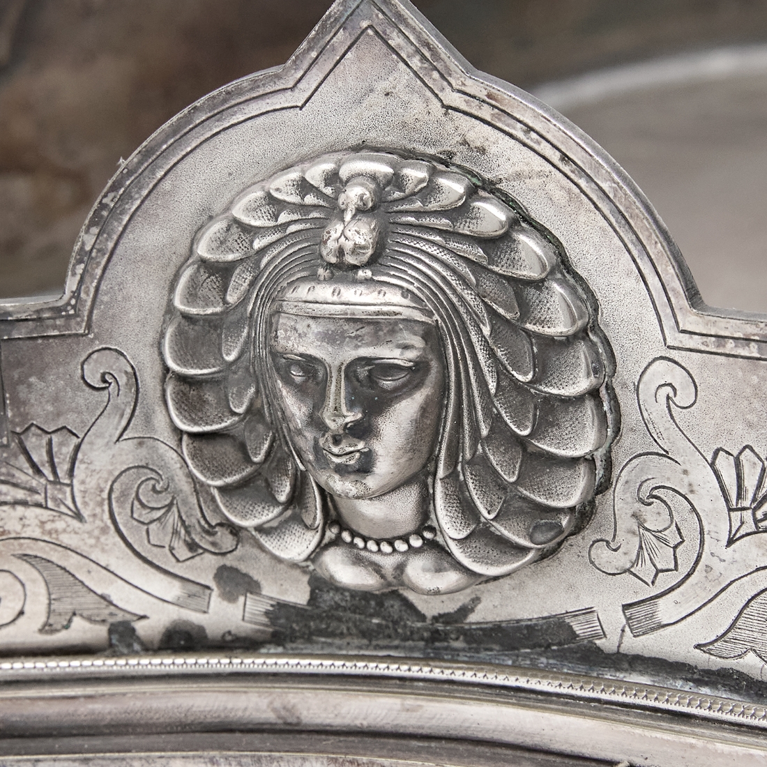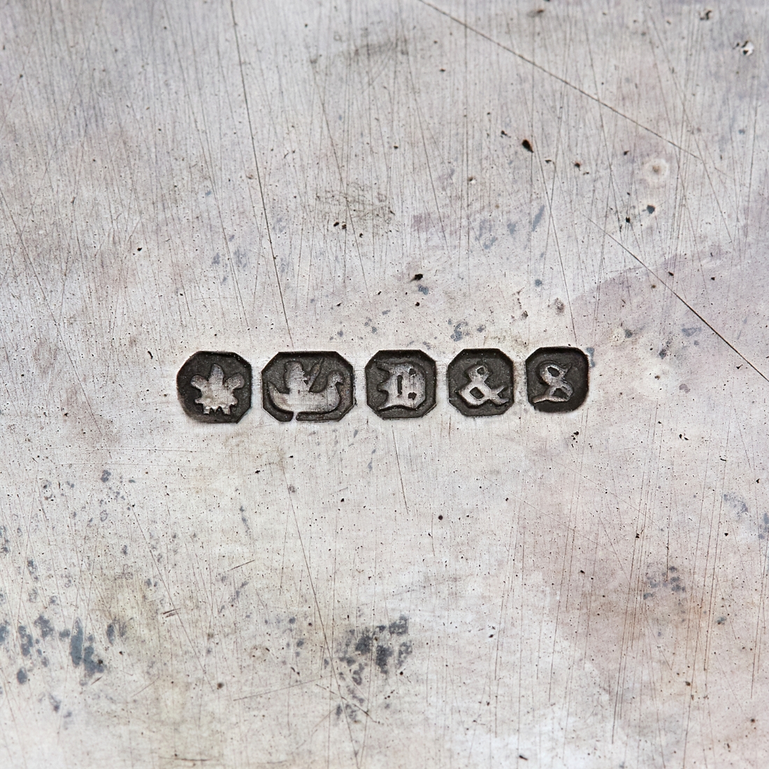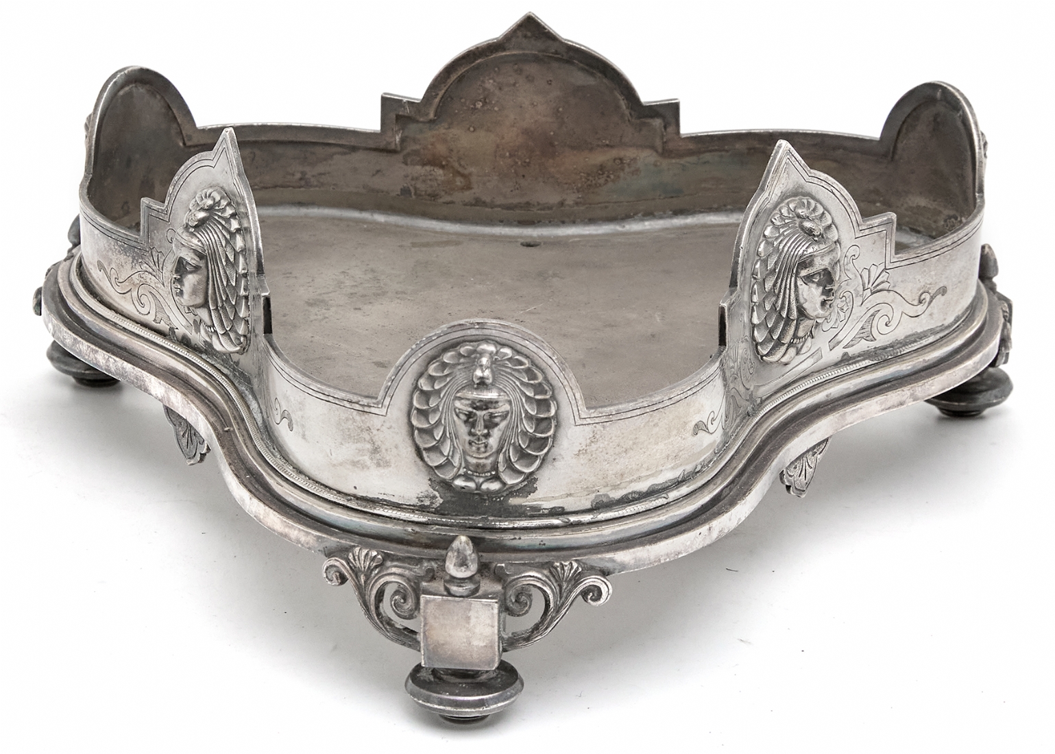 שני כלים עתיקים - מעמד (בסיס) אנגלי ויקטוריאני, לכלי זכוכית (רק הבסיס) מתוצרת: 'Deykin & Harrison' עשוי פליז מצופה כסף, חתום: Deykin & sons גובה: 10 ס"מ, רוחב: 25 ס"מ