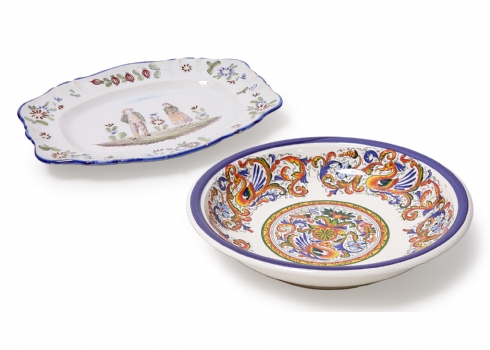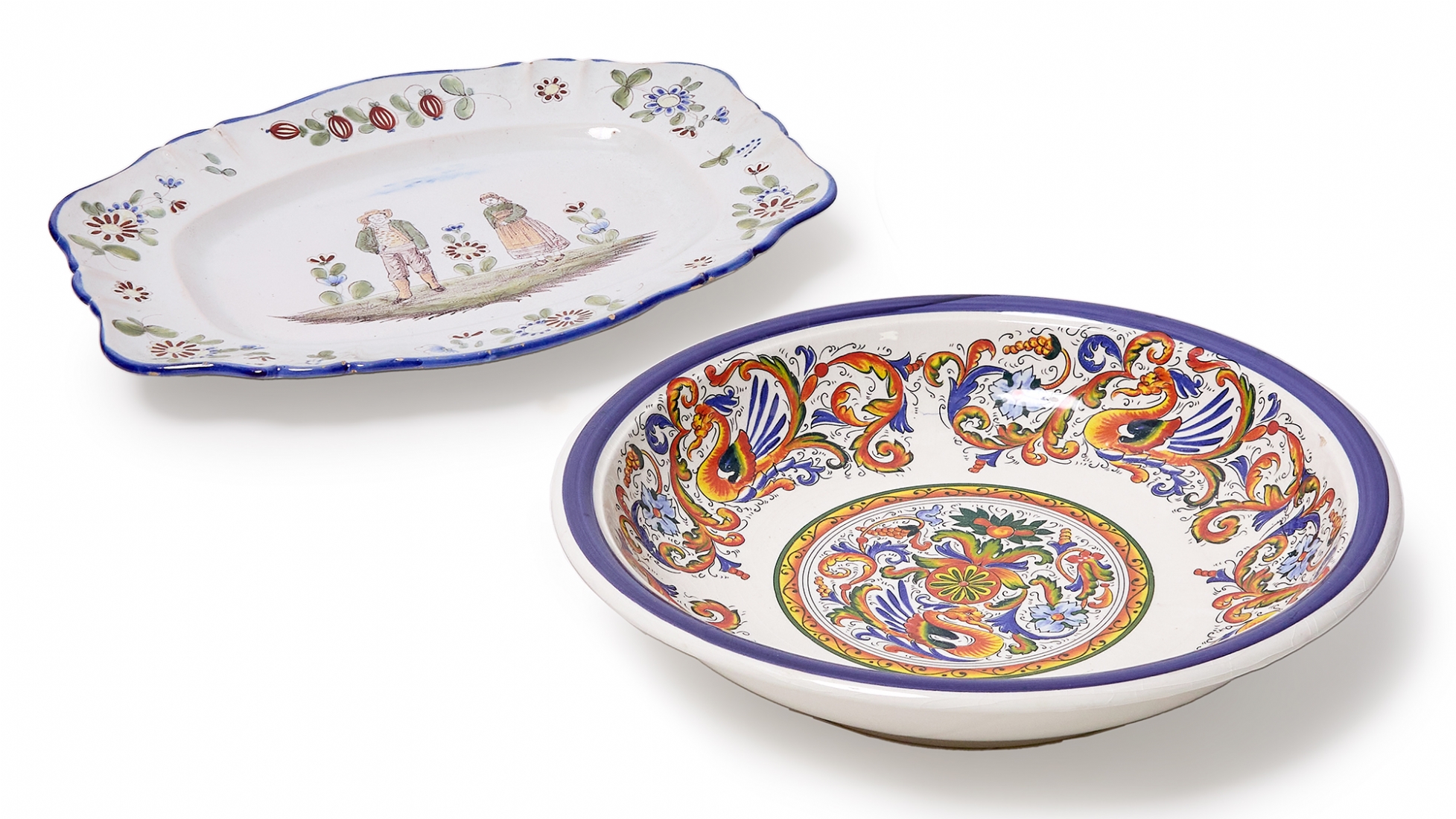 קערה עגולה איטלקית חתומה ומגש צרפתי לא חתום