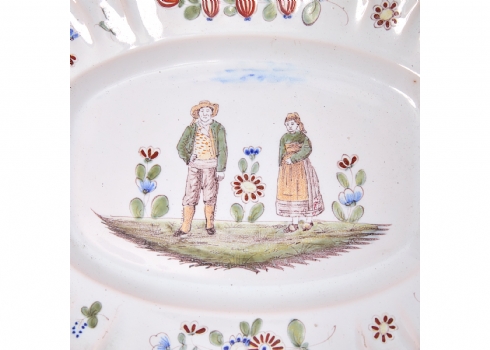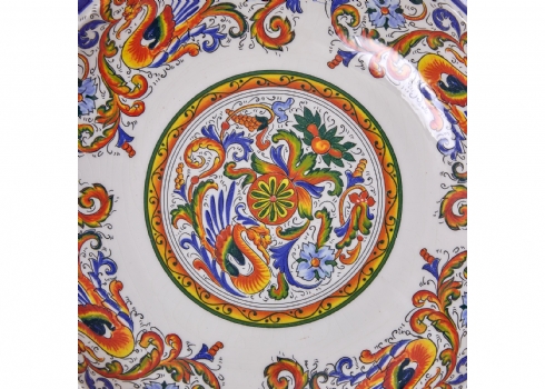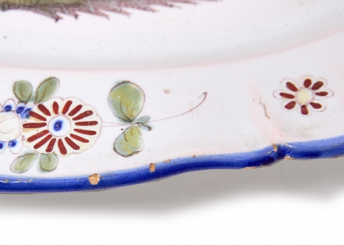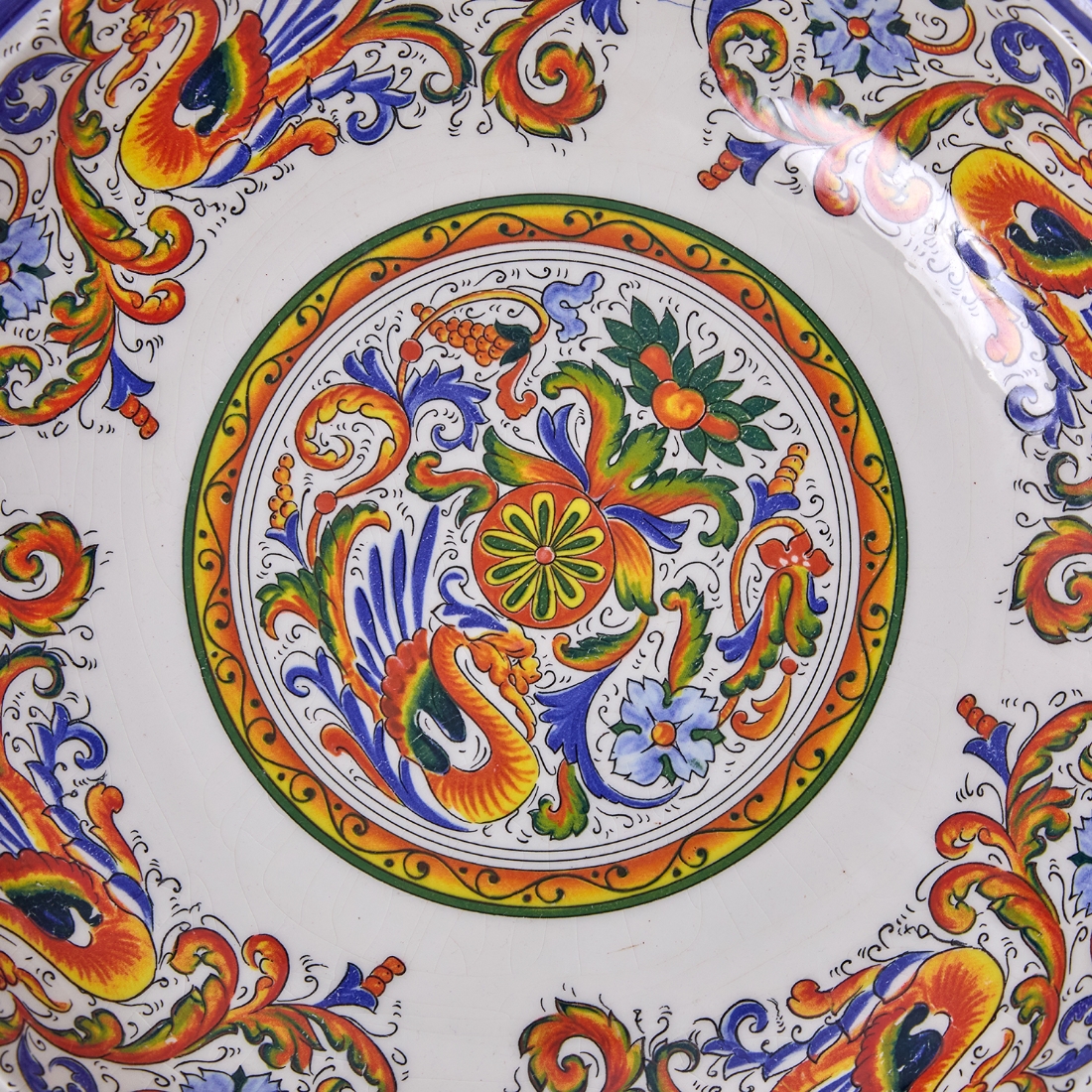 שני כלי הגשה עשויים פאיינס, מעוטרים ציורי יד