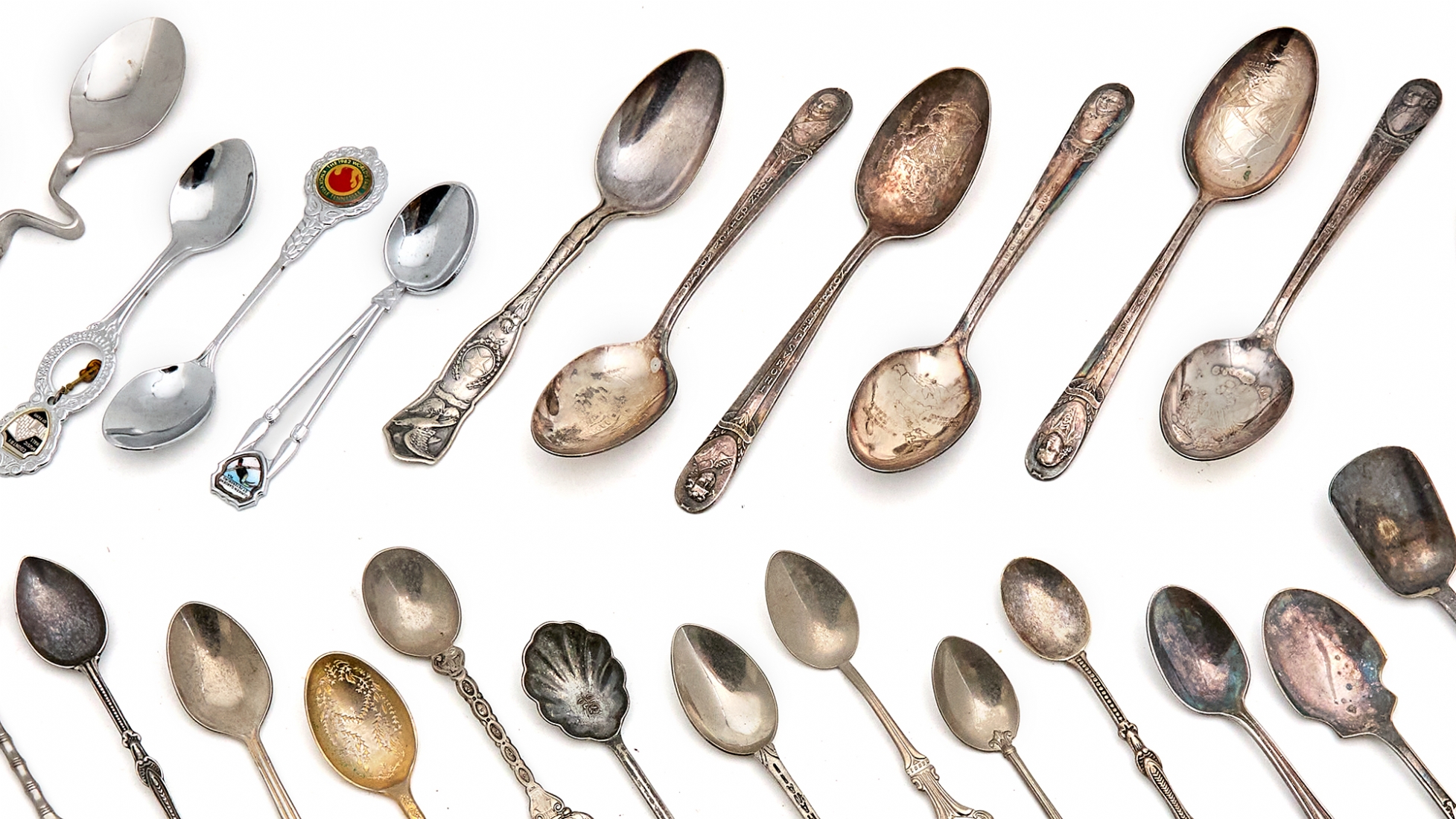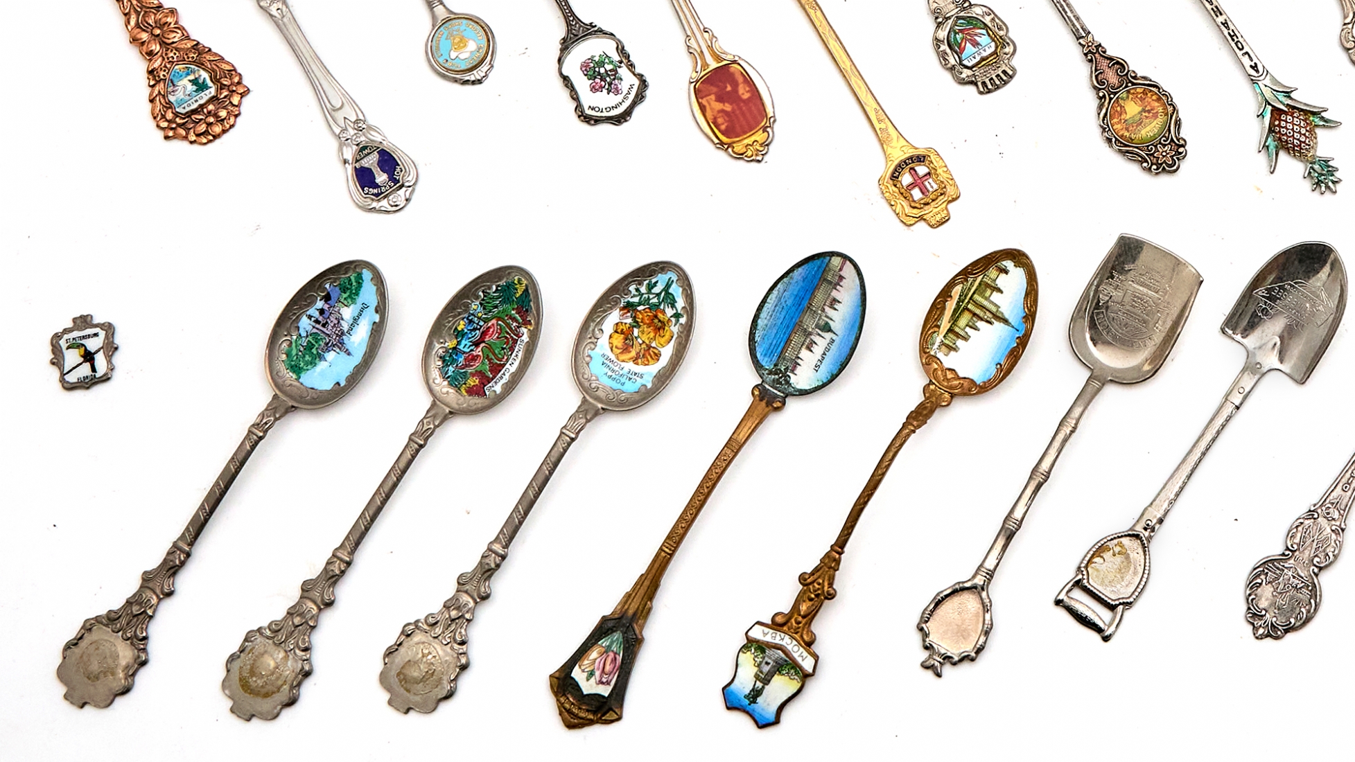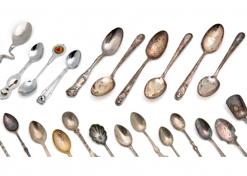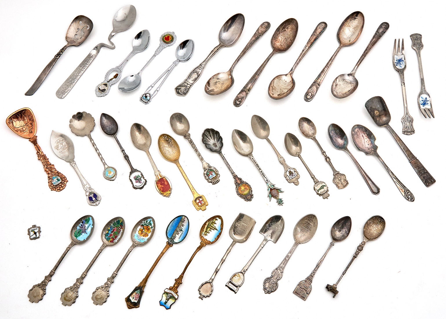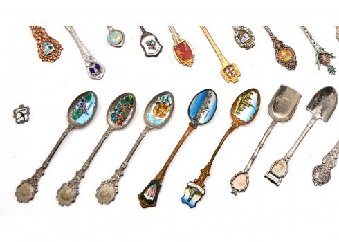 לוט של 37 כפיות מרחבי העולם וזוג מזלגות, סה"כ 38 פריטים עשויים מתכת