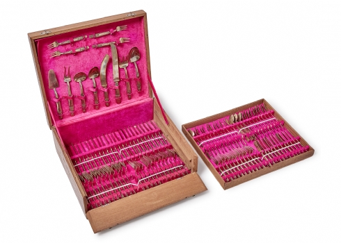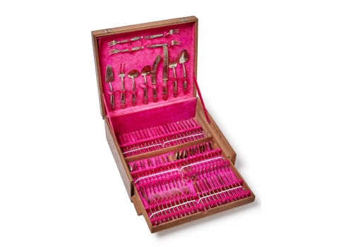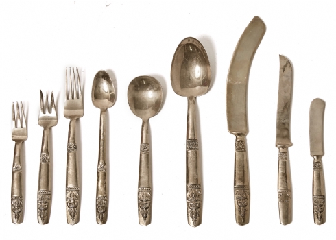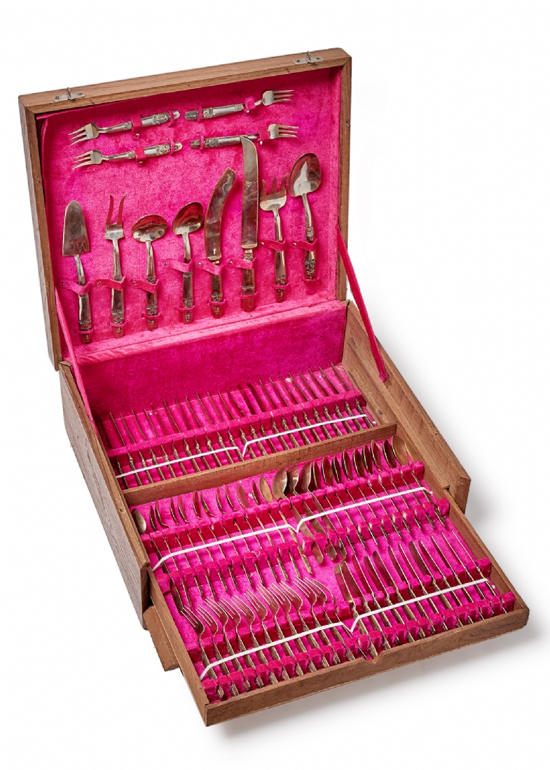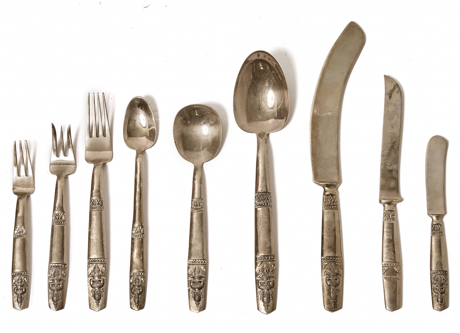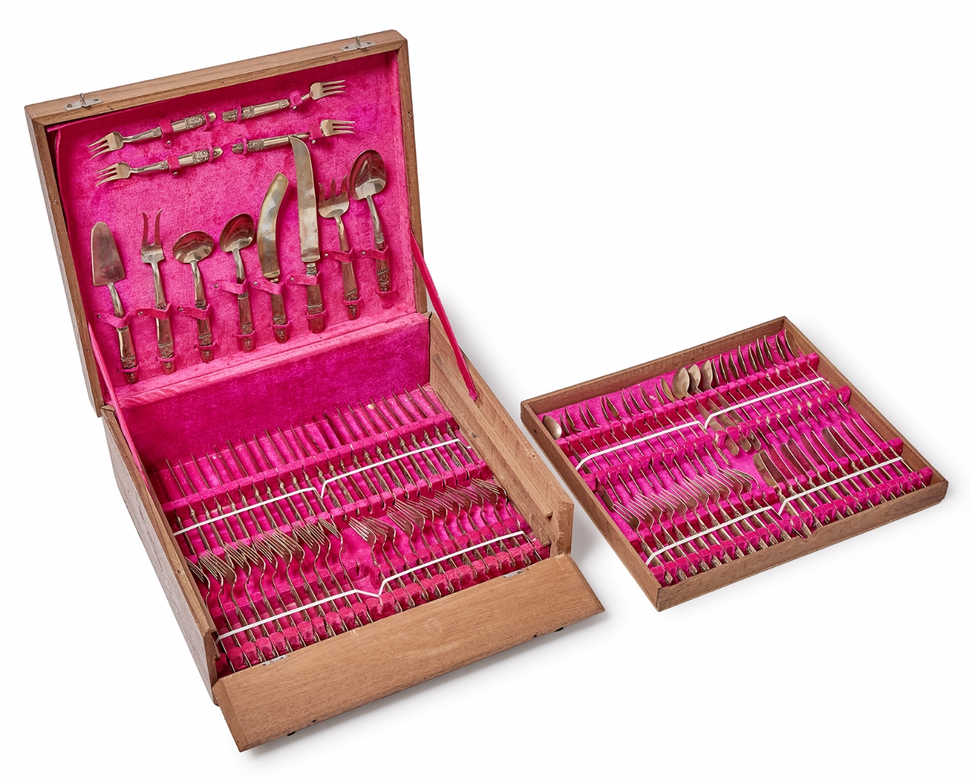 סט סכו"ם תאילנדי עשוי פליז מוזהב בתיבה מקורית