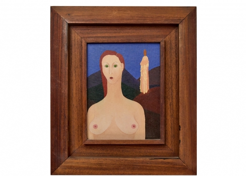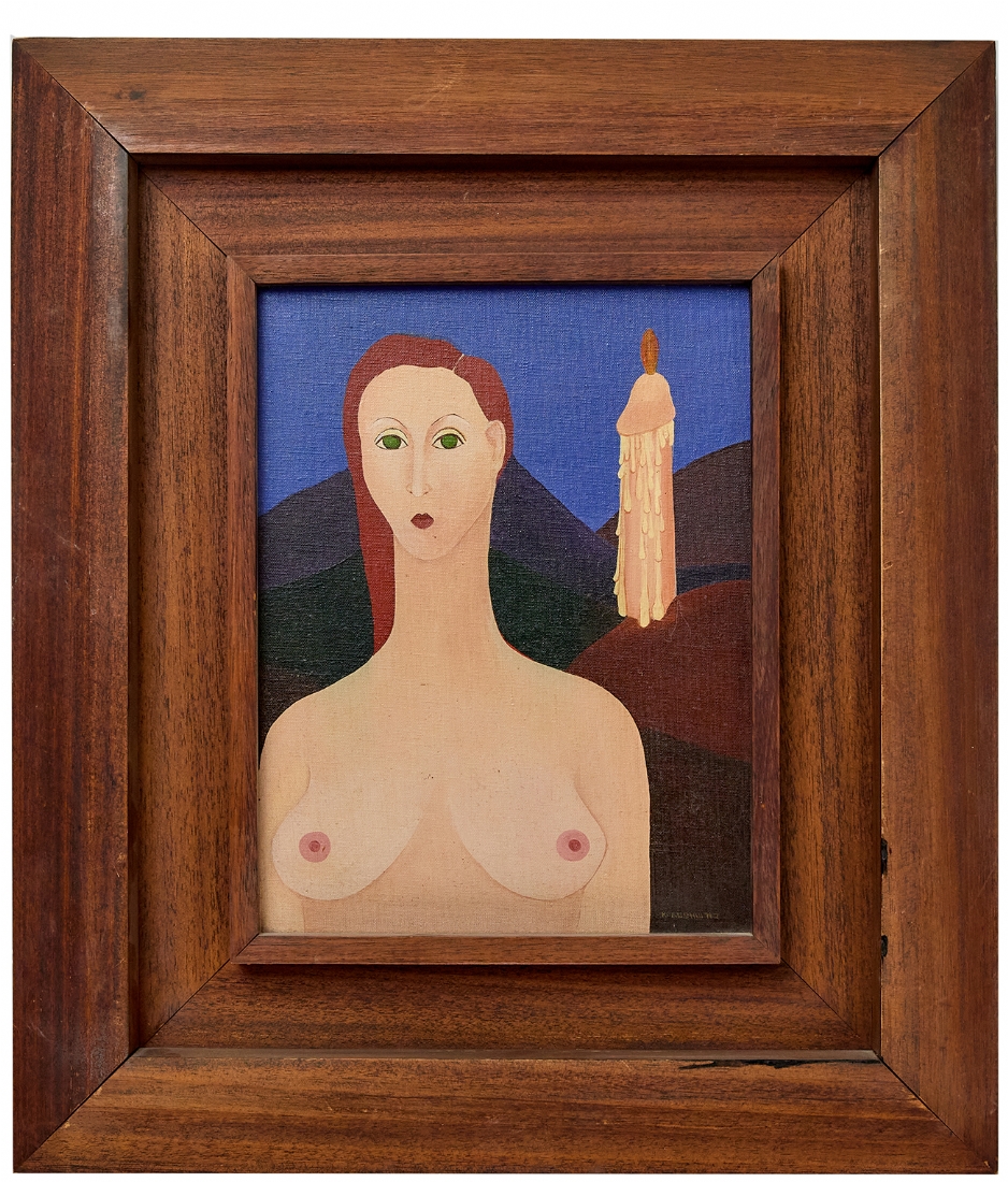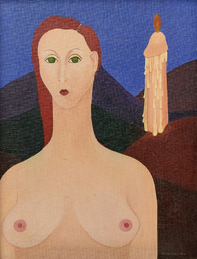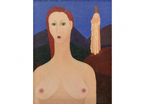 נאוה כורש (נ.1950) - 'נר זקור לצד ערום נשי' - שמן על בד צרפתי, חתום