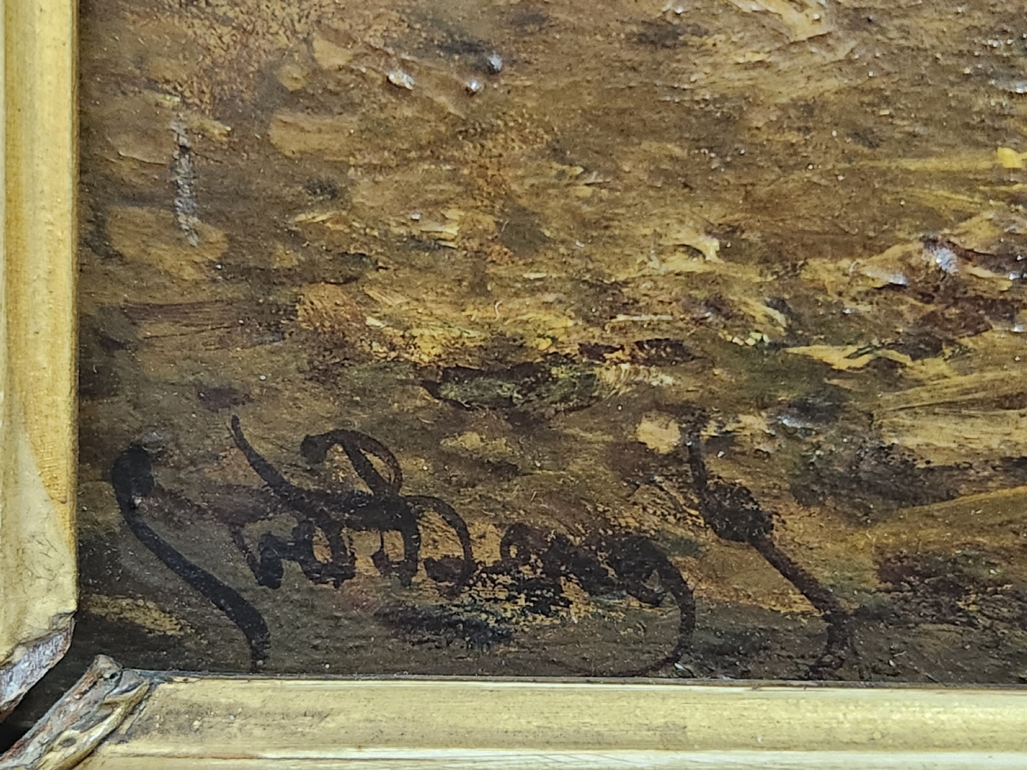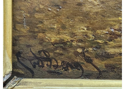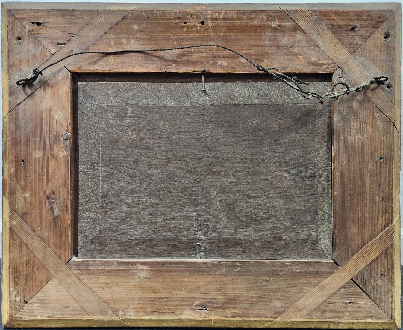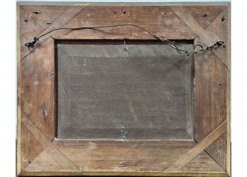 שמן על לוח, חתום, מספר קילופי צבע קטנים, נתון במסגרת נאה (פגמים קטנים למסגרת)