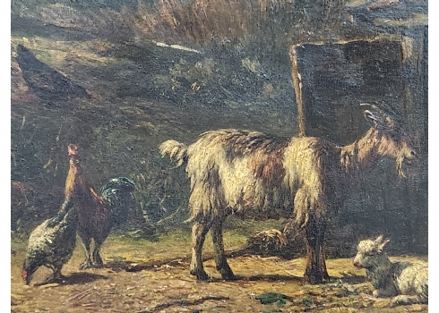 סימון ואן דן ברג (Simon van den Berg, 1812-1891) - 'תיש ליד תרנגולות'