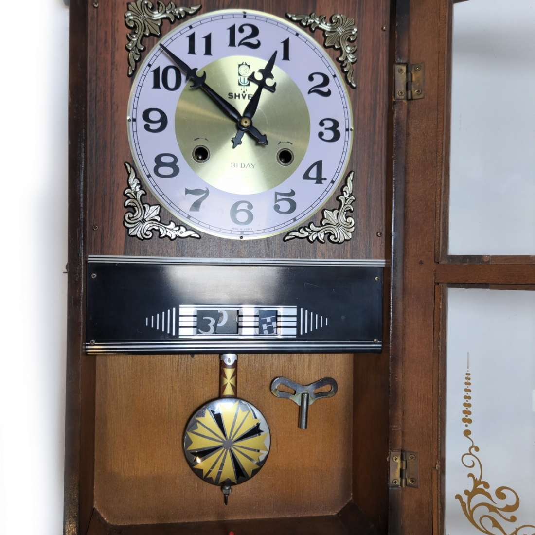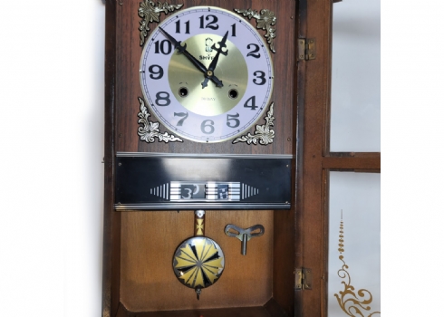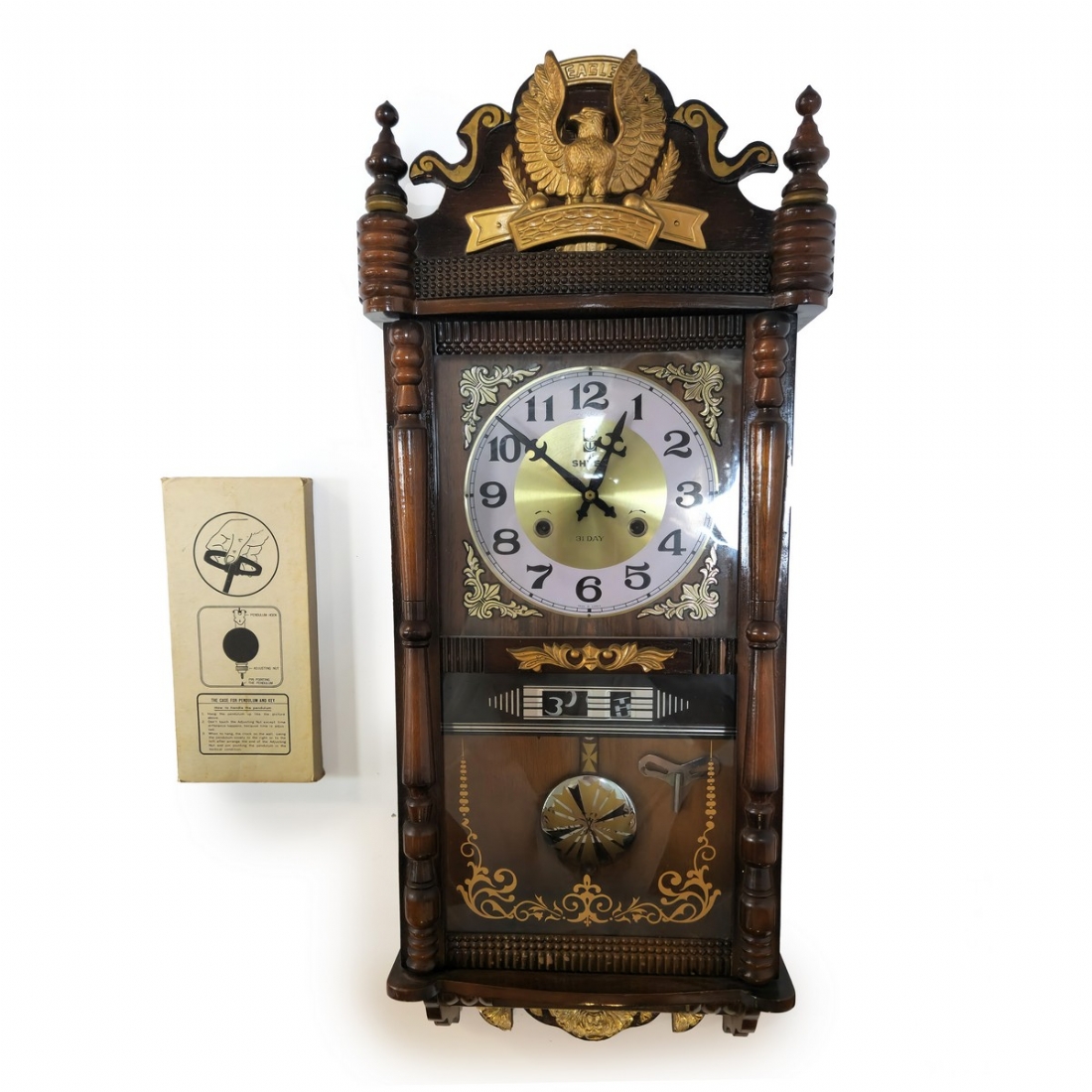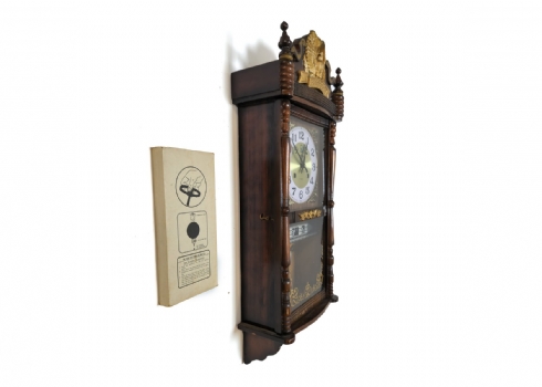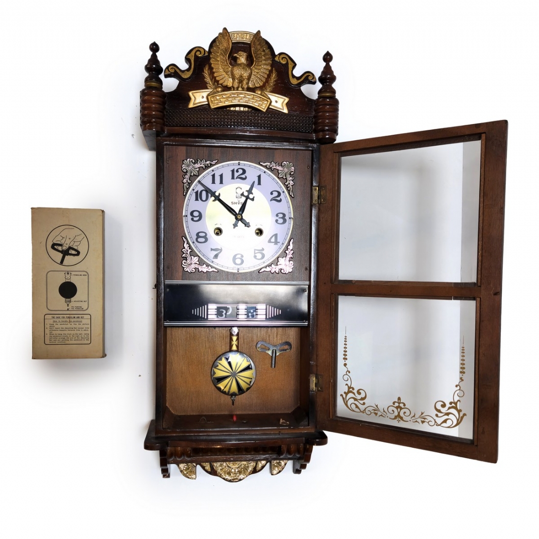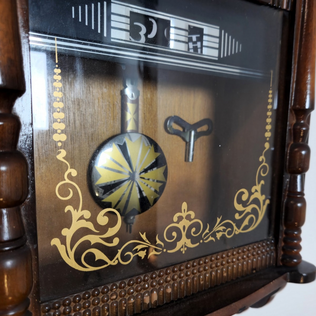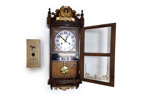 שעון אורלוגין בסגנון עתיק עשוי עץ וזכוכית, מגיע עם מטוטלת נוספת באריזה מקורית