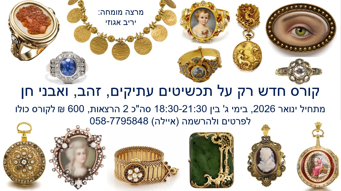 קורס רק על תכשיטים עתיקים, זהב, יהלומים, אבני חן ועוד