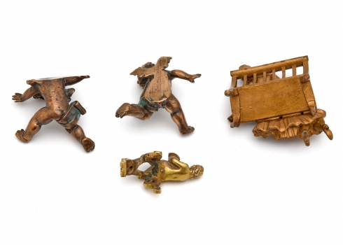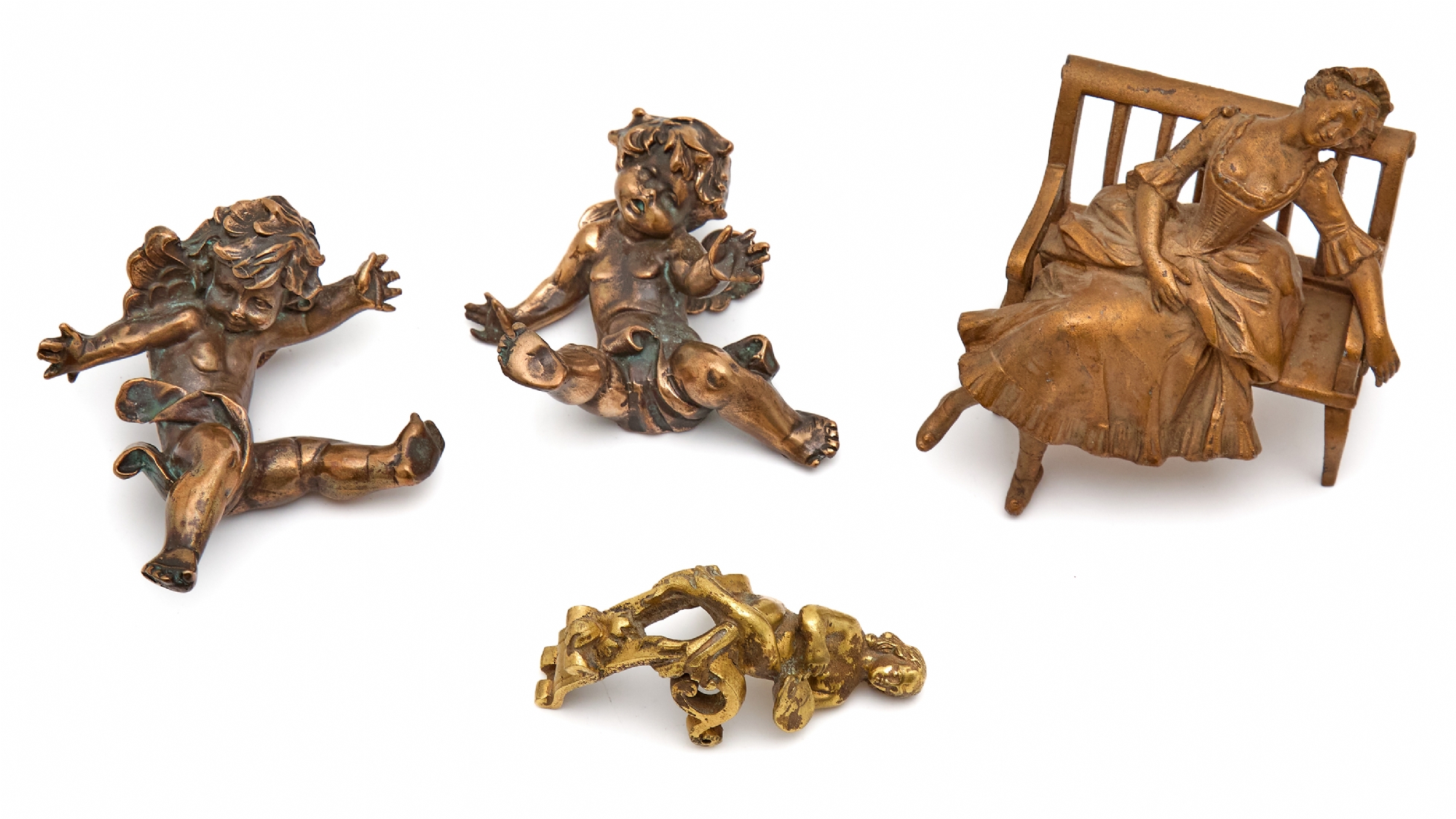 ארבעה פסלי ברונזה ושפלטר בדמויות אנשים ומלאכים