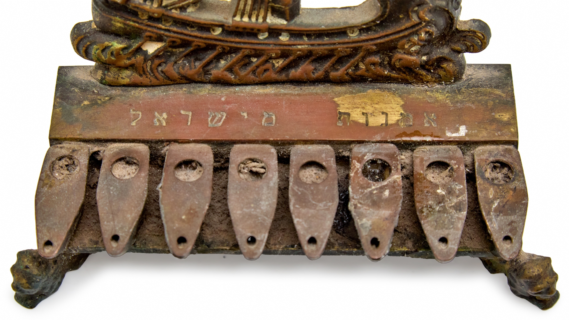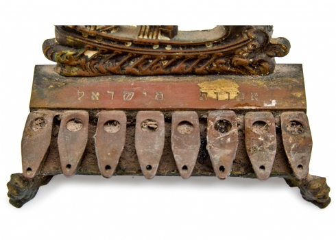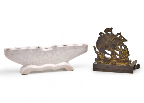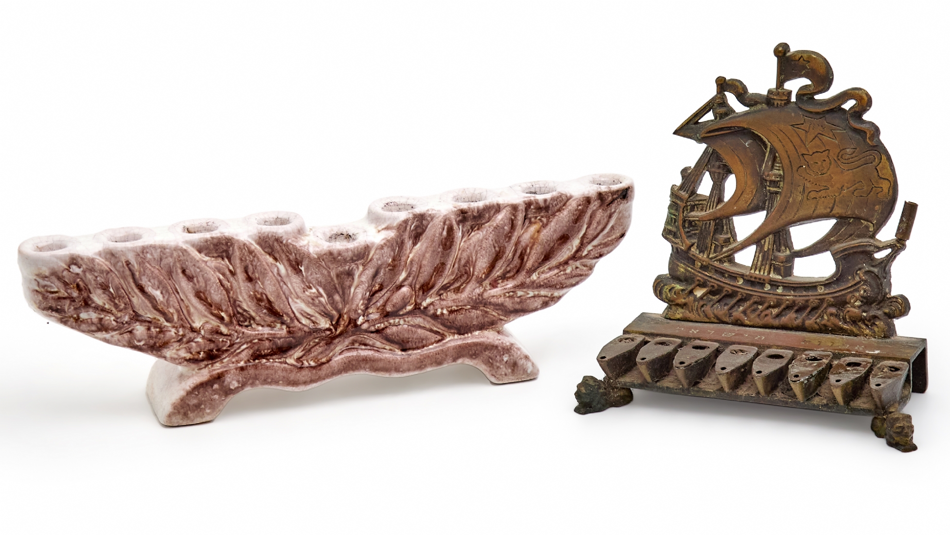זוג חנוכיות עשויות ברונזה וקרמיקה