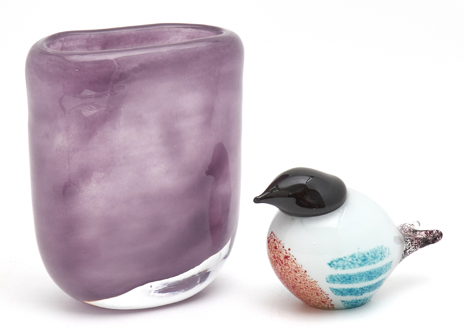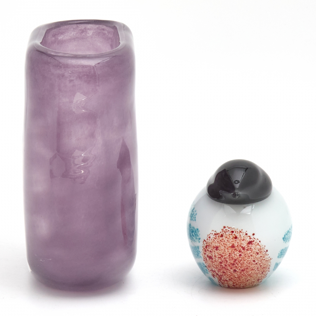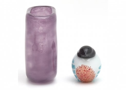 שני פריטי זכוכית סטודיו עשויים בניפוח יד