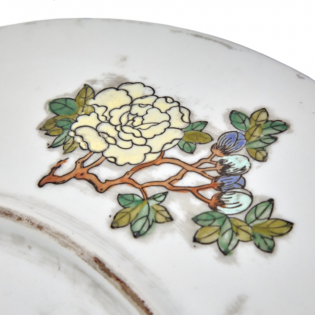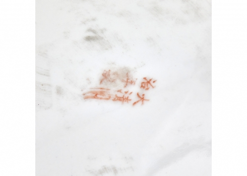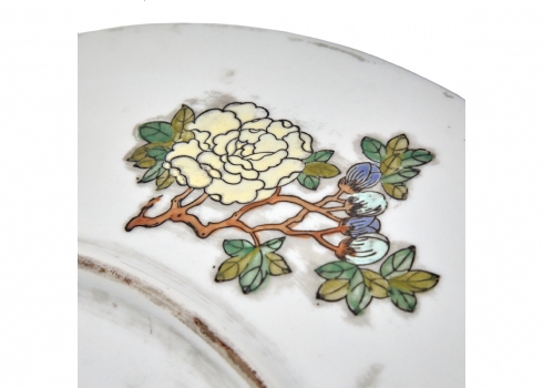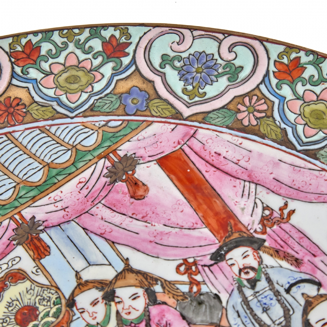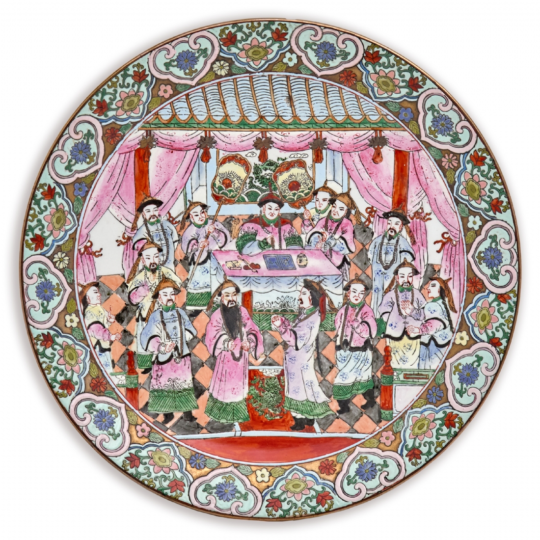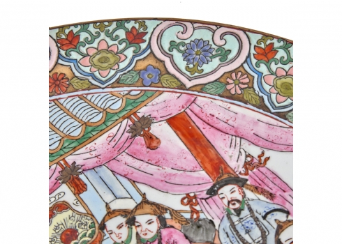 צלחת סינית גדולה מעוטרת באמייל - 'משפחה ורודה', חתומה