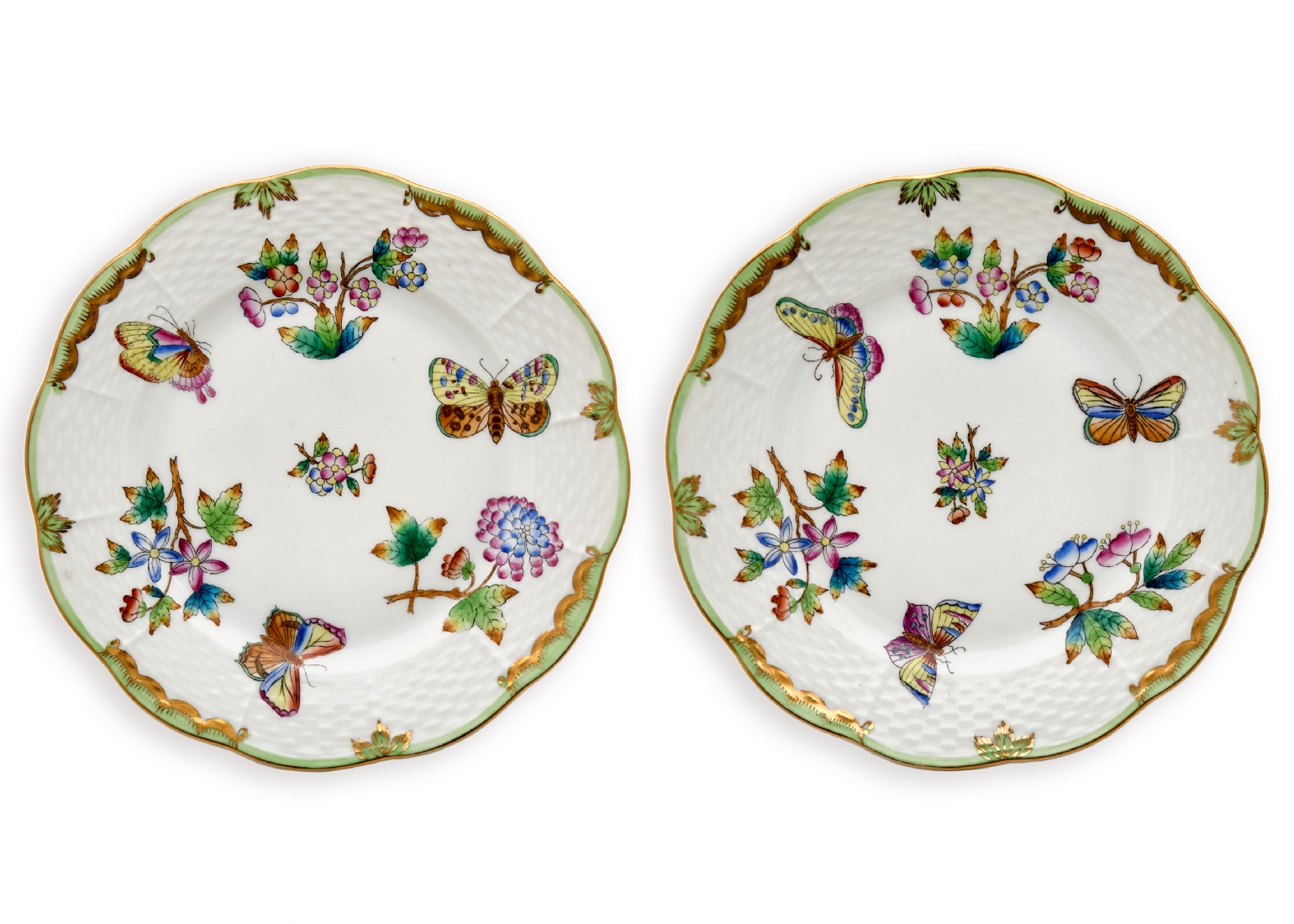 שתי צלחות פורצלן הונגריות מתוצרת הרנד 'Herend' חתום