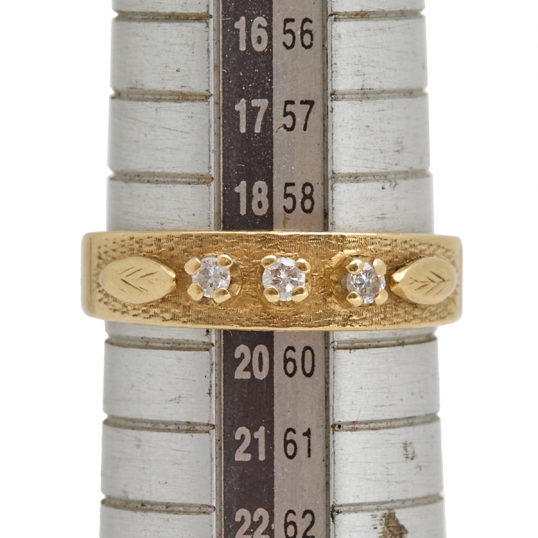 משובצת 3 יהלומים במשקל כולל של כ: 9 נקודות סה"כ מידה על פי צילום על מוט מדידה משקל כולל: 5.23 גרם