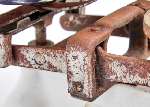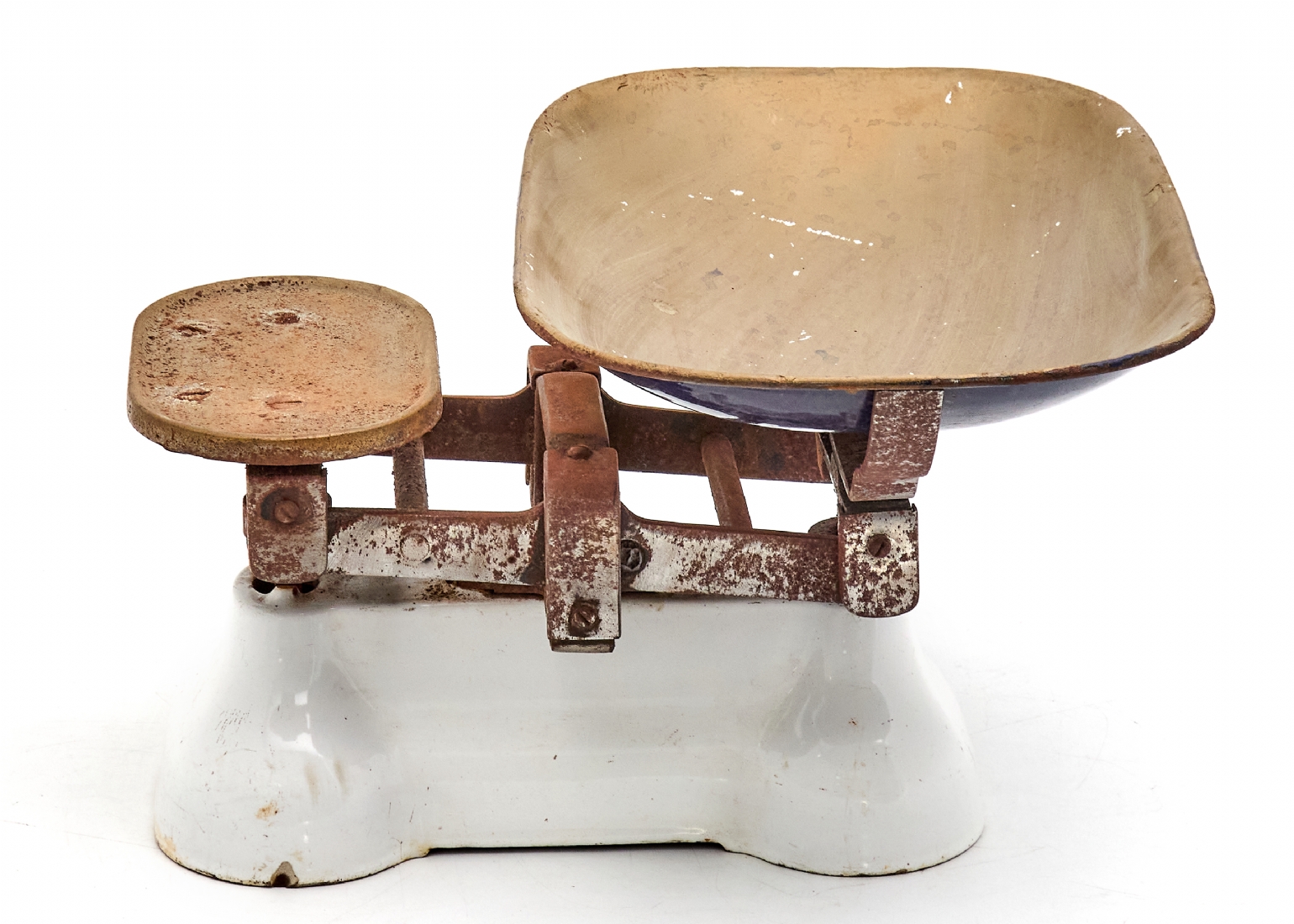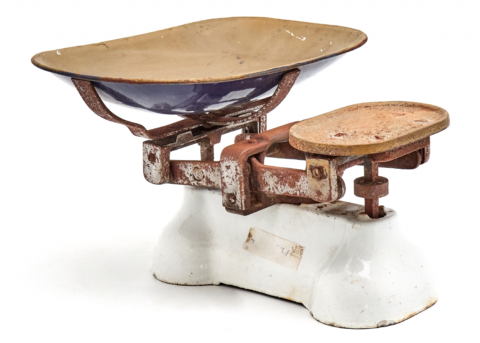 משקל מאזניים עתיק עשוי ברזל, צבוע אמייל לבן
