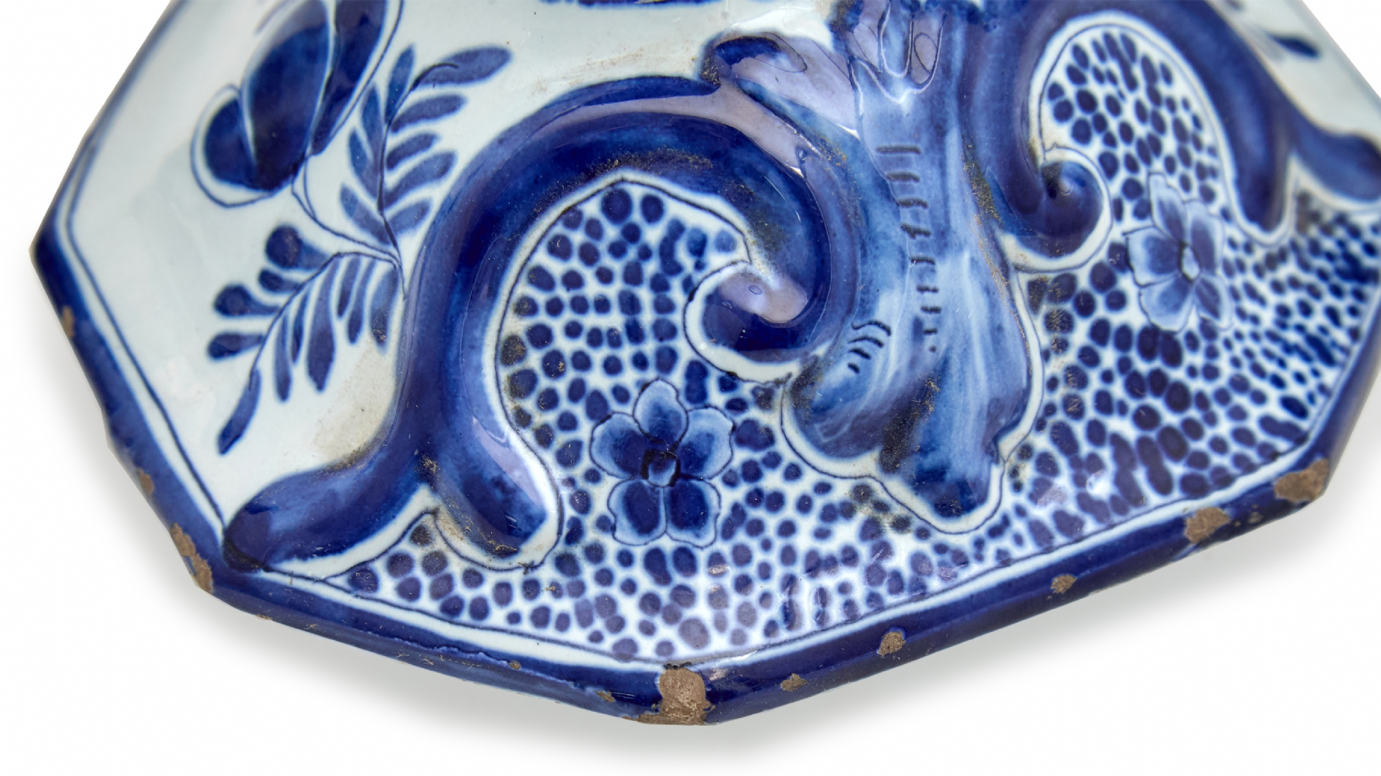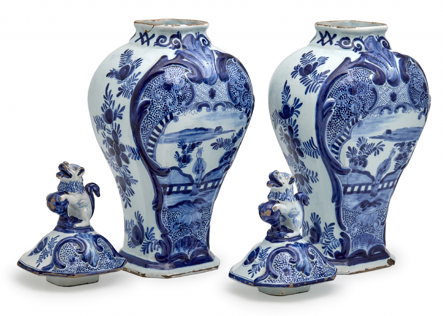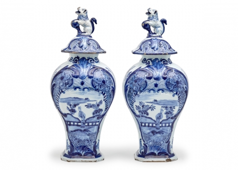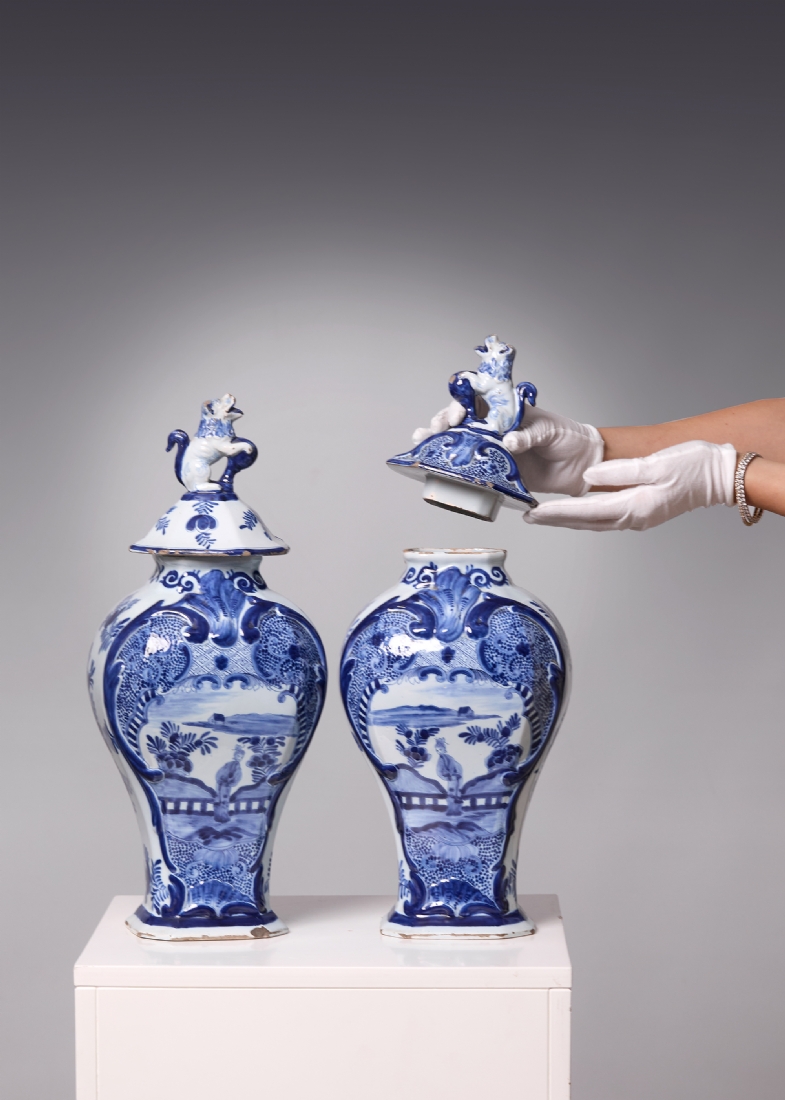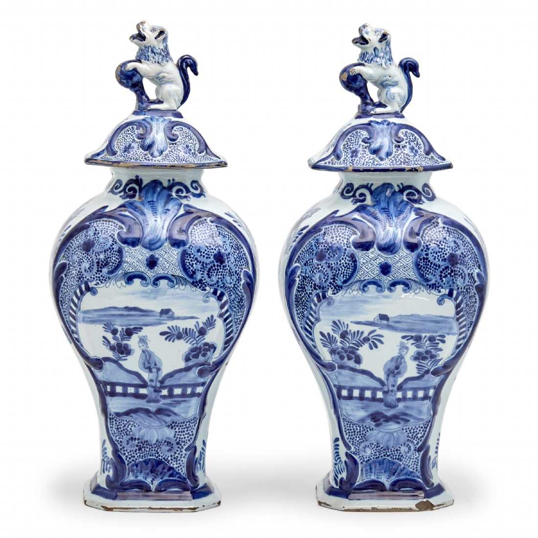 זוג אגרטלים הולנדים עתיקים מהמאה ה-18 עשויים חרסינת דלפט