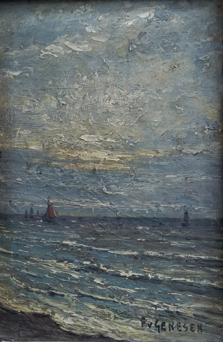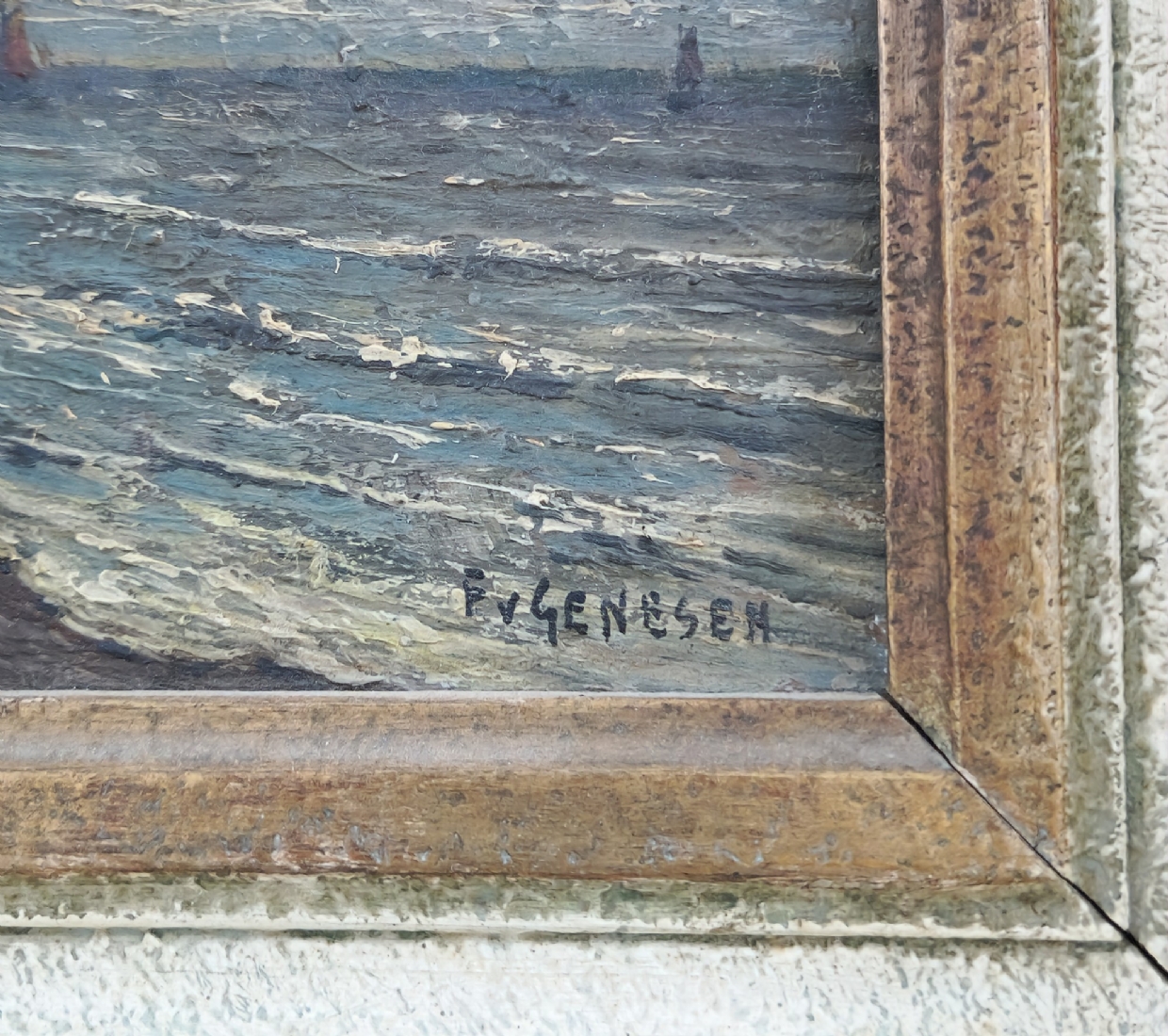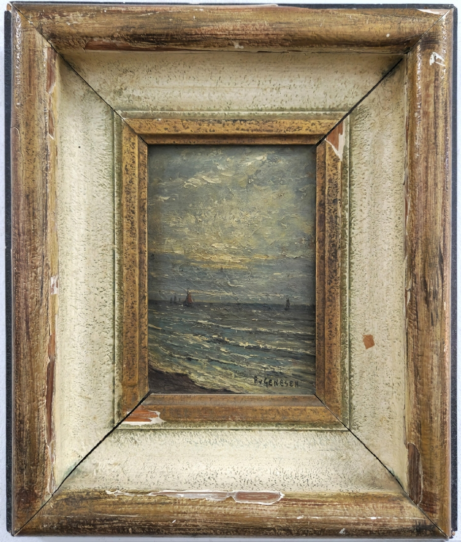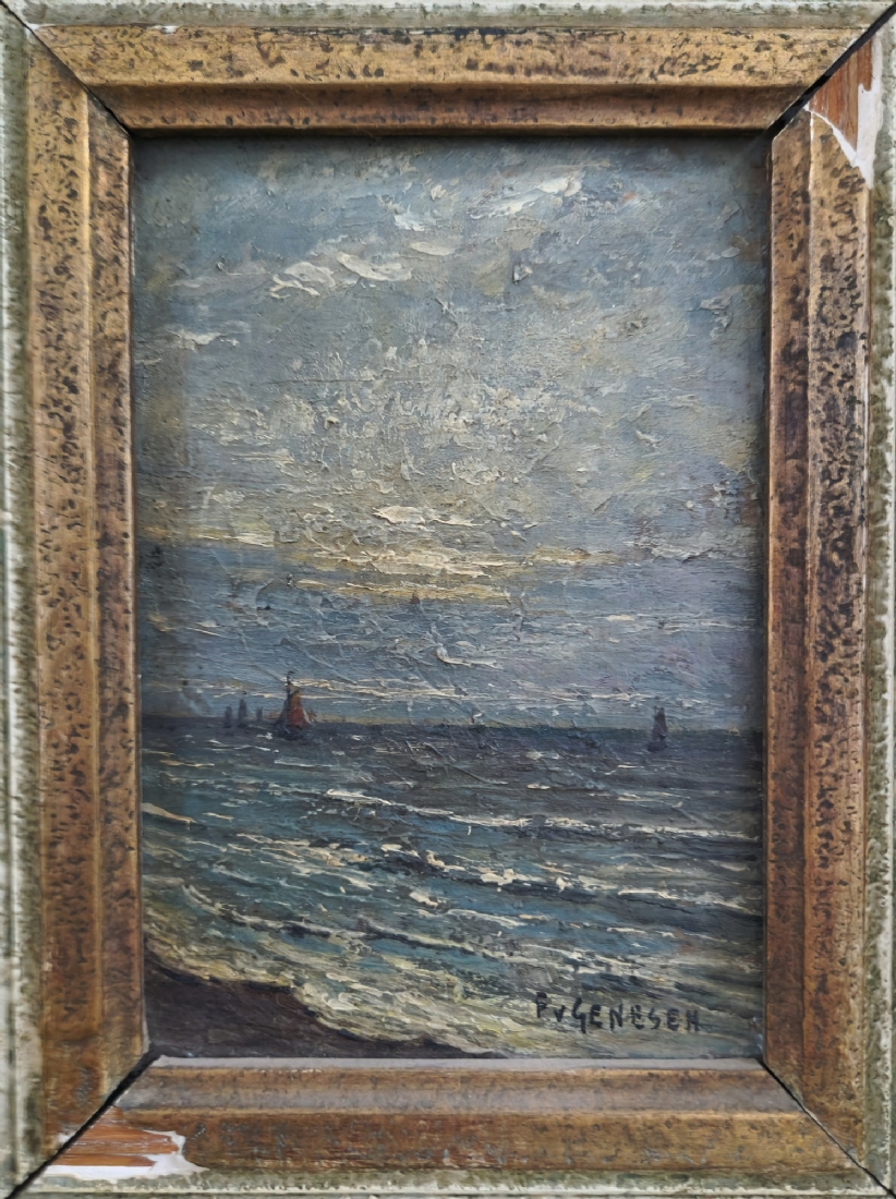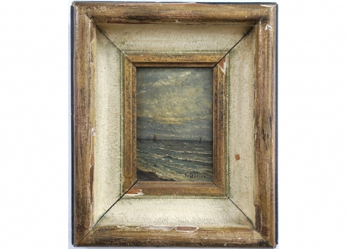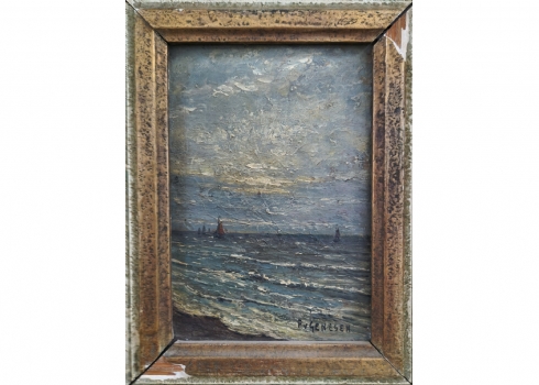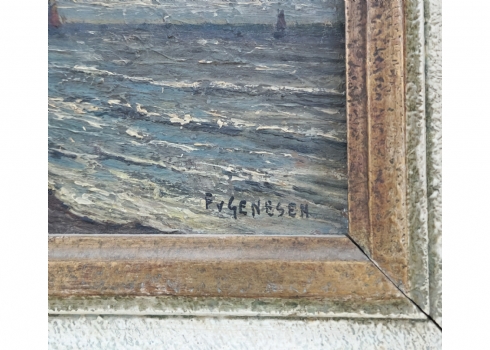 'סירות בים' - ציור עתיק שמן על לוח חתום
