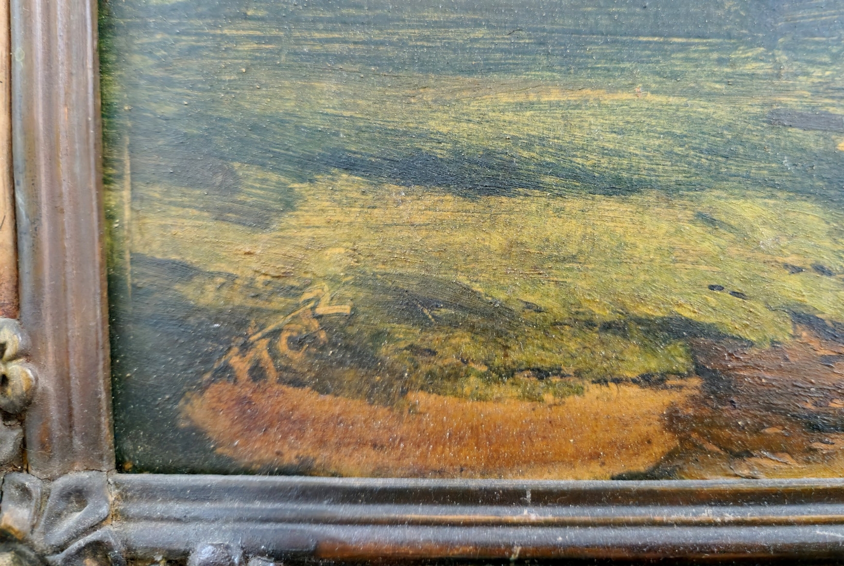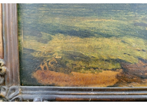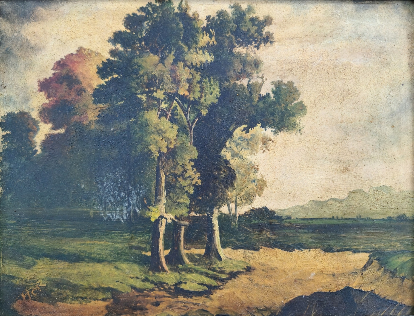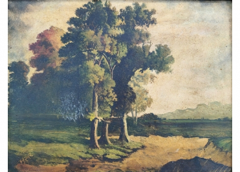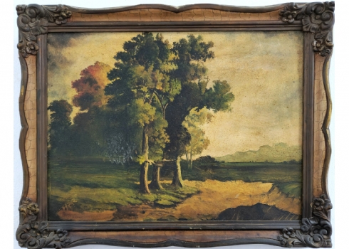'נוף חורשה' - ציור עתיק שמן על לוח, חתום