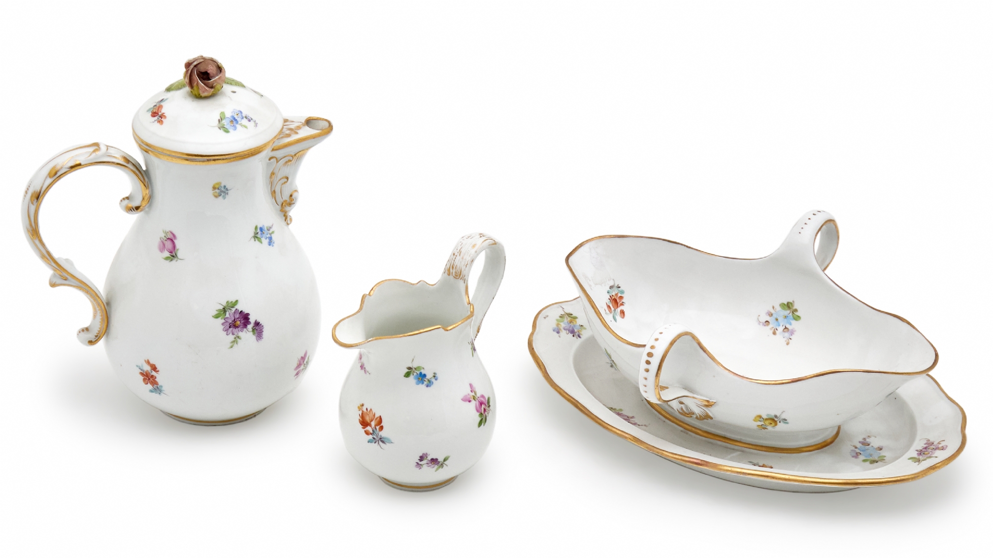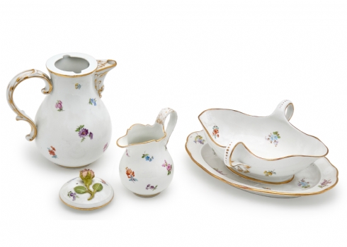 לוט של 3 כלי פורצלן עתיקים מתוצרת: 'מייסן' (Meissen), חתומים