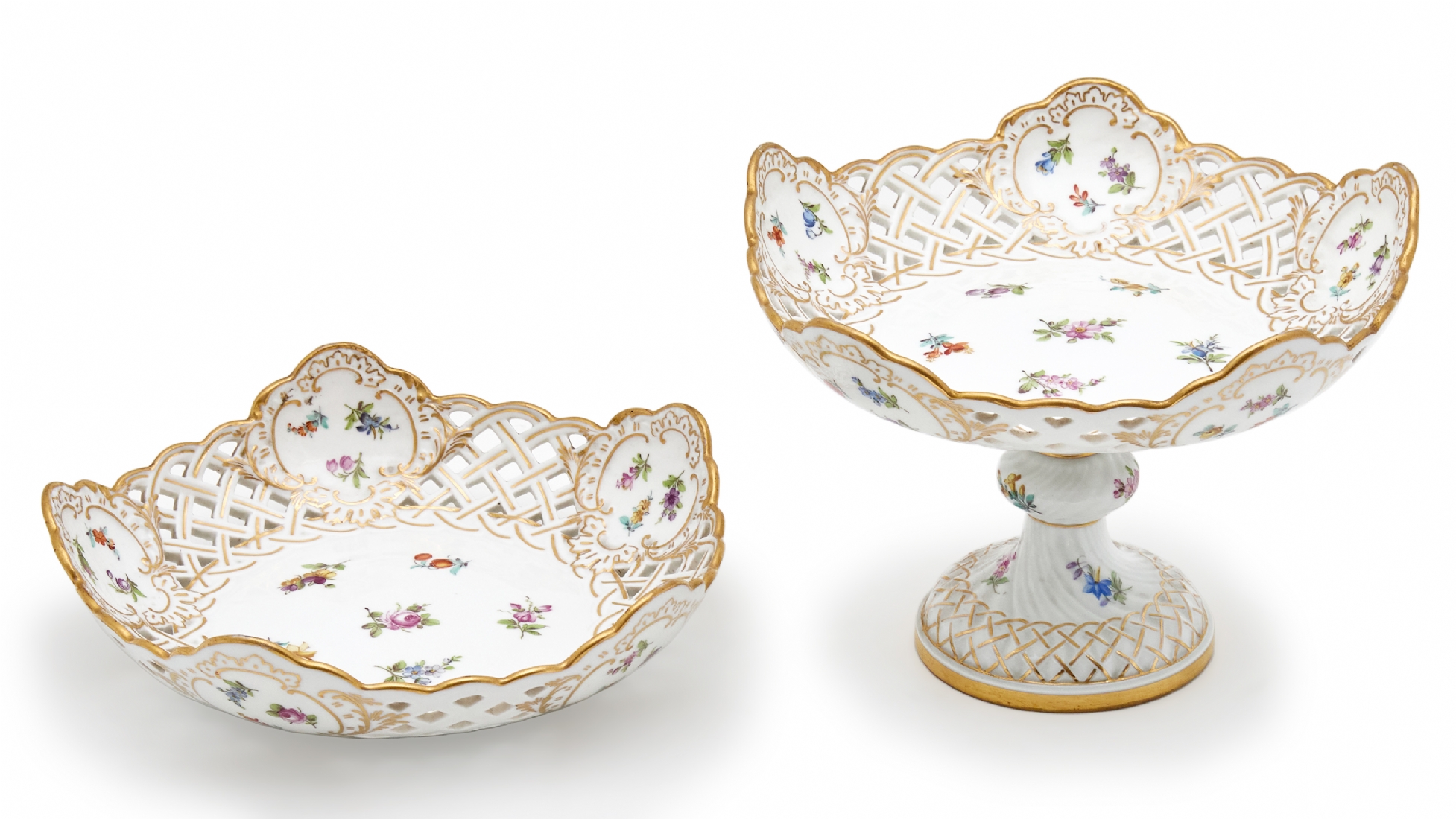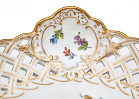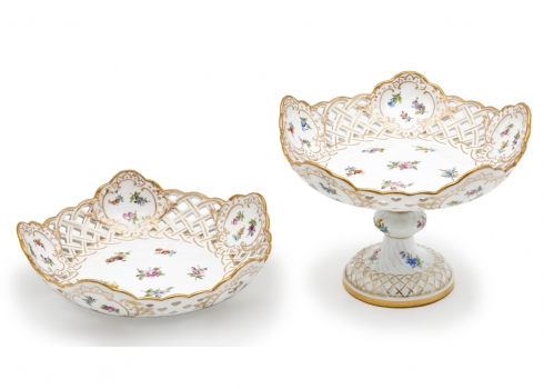 שני כלי פורצלן עתיקים (טזה וקערה) מתוצרת 'מייסן' (Meissen)