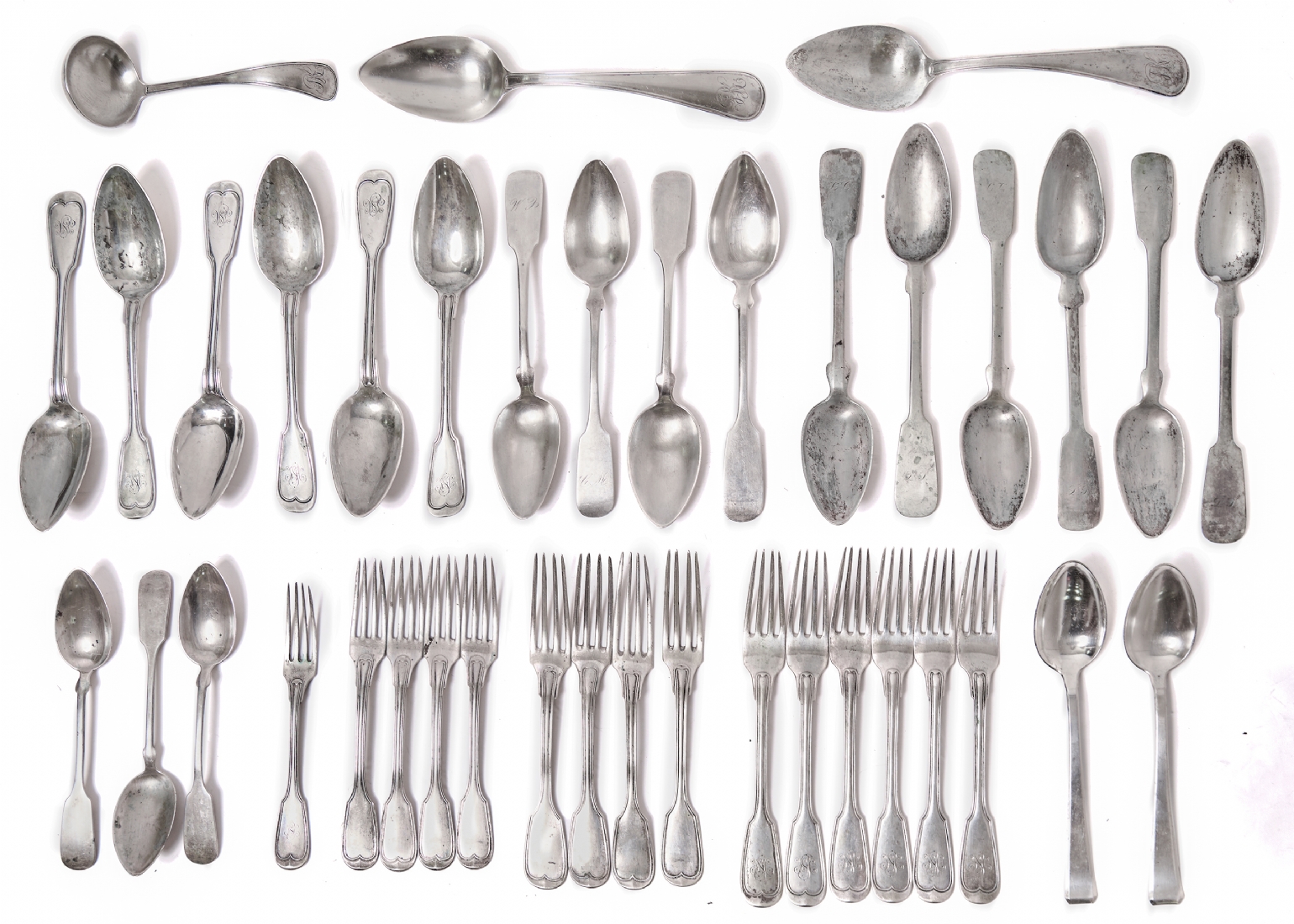 לוט של 40 פרטי סכו"ם עתיק עשוי כסף '800' עד '830', יצרנים ודגמים שונים