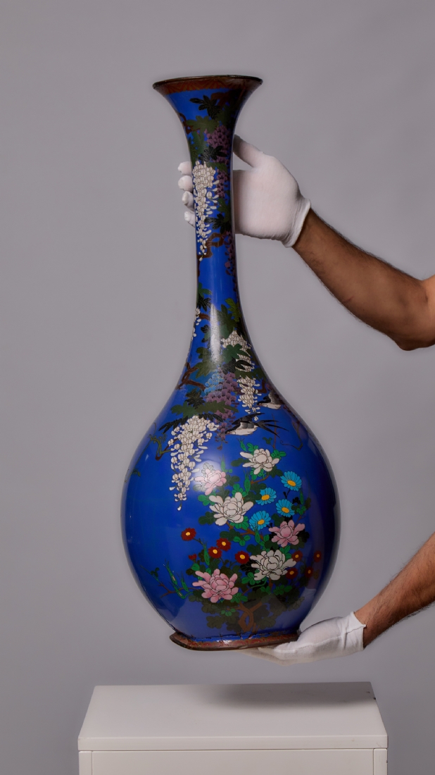 אגרטל ריצפה קלואזונה (Cloisonne) יפני עתיק איכותי וגדול