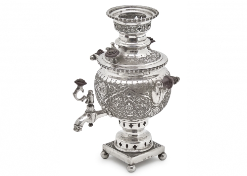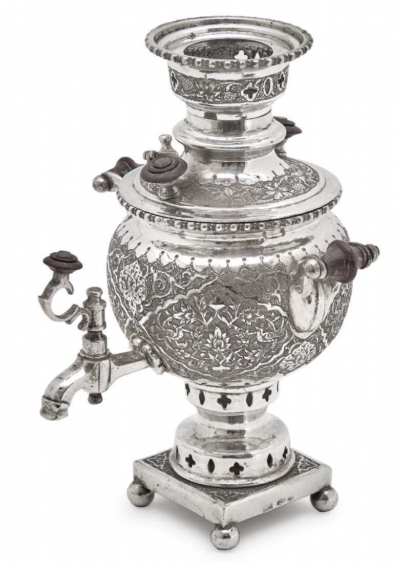 סמובר ומגש פרסים עתיקים עשויים כסף חתומים: 'Vartan'