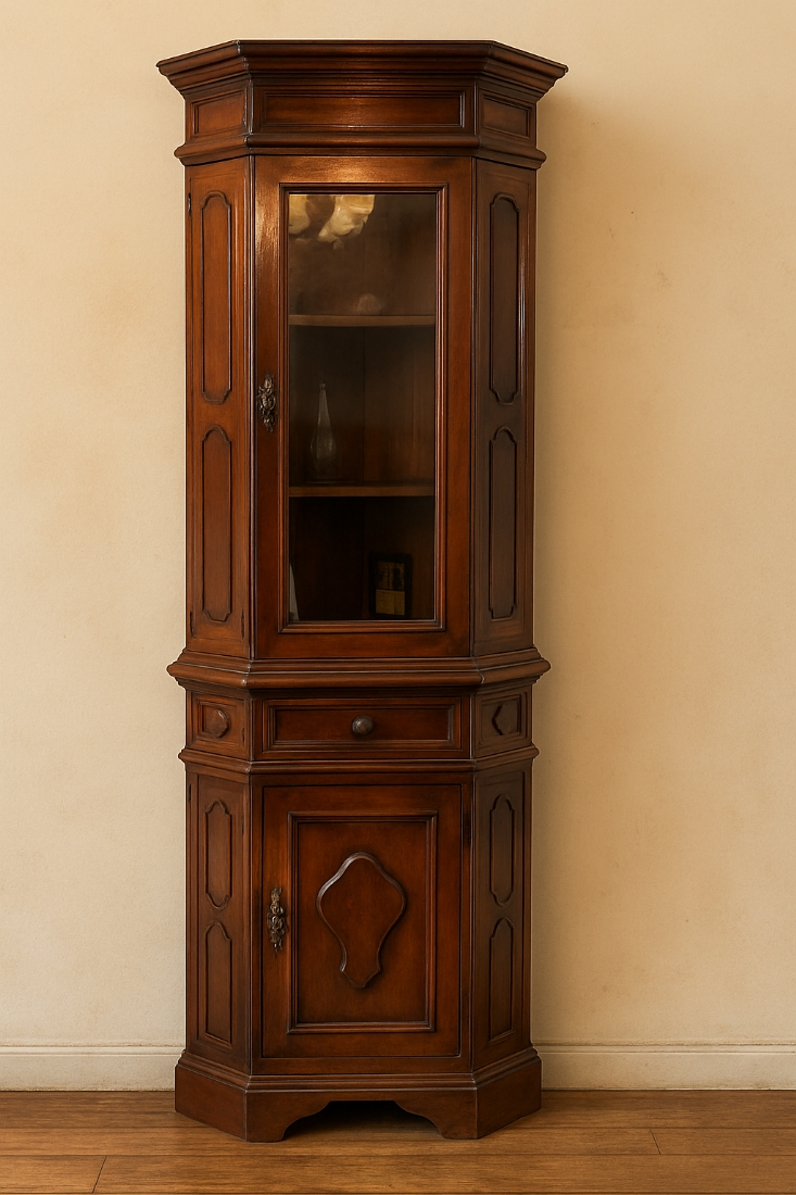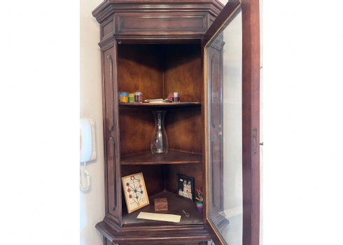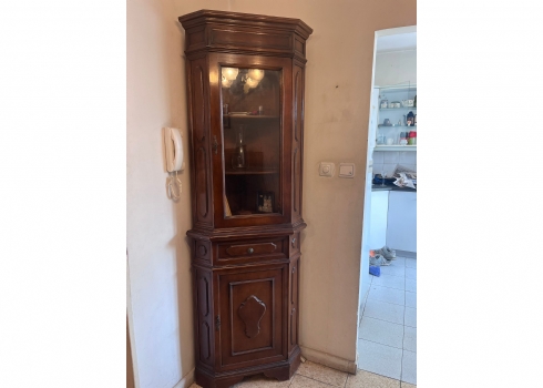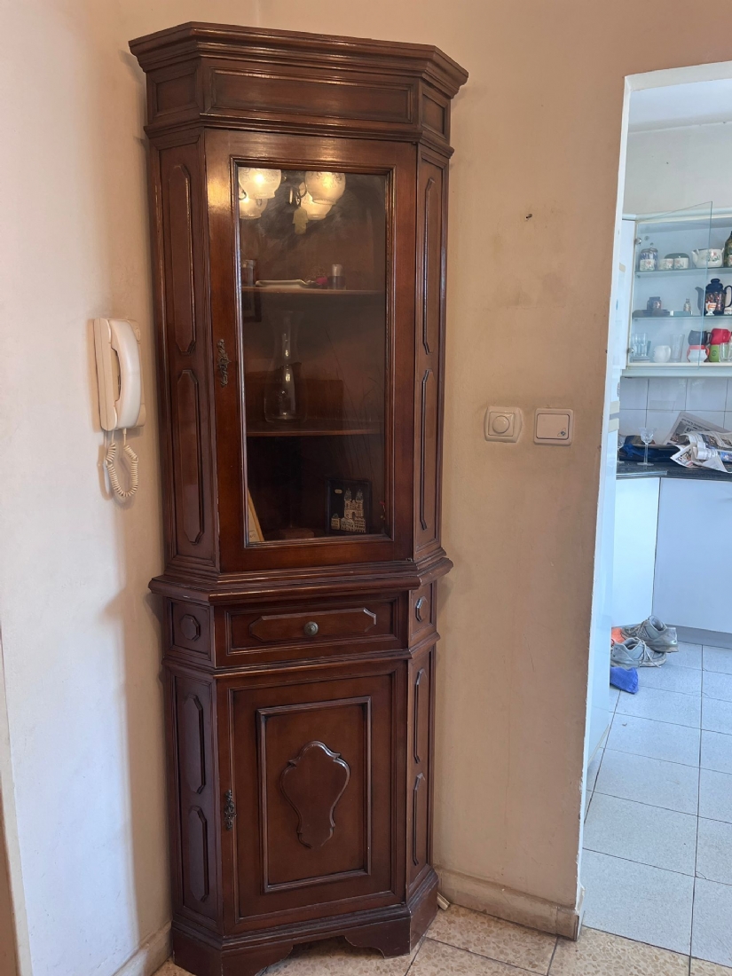 ארון ויטרינה פינתי עשוי עץ וזכוכית