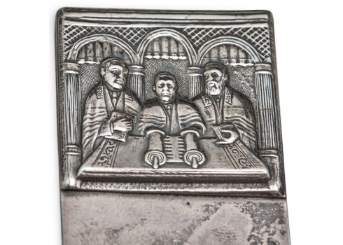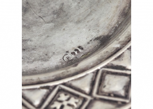 קנקן כסף אמריקאי ישן למים קרים מתוצרת: 'POOLE' עשוי כסף 'סטרלינג' (Sterling) כלי אמריקאי עתיק מפואר ומרשים, מתוצרת: 'BARBOUR SILVER CO', עשוי מתכת מצופה כסף אגרטל ישן ואיכותי במיוחד עשוי קריסטל מלוטש ביד ושפה עליונה עשויה כסף כלי עתיק למי ורדים (Rosewater Sprinkler) מהמאה ה-19 כפי הנראה הודי בסגנון מוגולי לוט של 7 מזלגות כסף גרמנים עתיקים, חתומים: '12', משקל כולל: 326 גרם קערת רחצה צרפתית עתיקה וגדולה סט כלי הגשה אנגלי עתיק (ויקטוריאני) מפואר מסוף המאה ה-19 להגשת קפה ותה כד פורצלן ארט נובו מעוטר כסף (Silver Overlay Porcelain) על רקע קובלט כחול כהה דקנטר גרמני ארט נובו עתיק, משנת 1900 בקירוב, מתוצרת: 'WMF' כלי כסף אנגלי, עשוי כסף סטרלינג, מתוצרת: 'Adie Brothers Ltd' בברמינגהם, חתום צלחת כסף פרסית עתיקה ויפה, חתומה לוט פרטי סכו"ם אנגלי ישן מתוצרת: 'Walker & Hall', עשויים מתכת מצופה כסף, חתומים כלי אנגלי ישן לרוטב (רוטביה), מתוצרת: 'Walker & Hall', עשוי מתכת מצופה כסף, חתום כלי הגשה ומכסה תואם, עשויים מתכת מצופים כסף, חתום כלי הגשה וכיבוד מרובע, עשוי מתכת מצופה כסף, חתום מיחם (סמובר) אמריקאי ישן ואיכותי מתוצרת 'Reed & Barton', חתום, עשוי מתכת מוכספת קופסא עתיקה מסוף המאה ה-19, עשויה מתכת  ומשובצת אבני חן טבעיות מגש ישן ויפה בסגנון עתיק, עשוי מתכת מצופה כסף, חתום, נתמך על ארבע רגליות כד רוסי עתיק, מתחילת המאה העשרים, עשוי גוף קריסטל מלוטש בעבודת יד מיחם אנגלי עתיק (ויקטוריאני) מסוף המאה ה-19, עשוי פיוטר מצופה כסף סט של שלושה כלי כסף הודים (קשמיריים) עתיקים מהמאה ה-19 סט אנגלי עתיק (ויקטוריאני) להגשת דגים כלי מוכסף להגשה וכיבוד קנקן ארט דקו ישן לשתייה קרה קנקן מתוצרת: 'Mappin & Webb' שני כלי כסף עתיקים כף הגשה אוסטרית עתיקה כלי הגשה ישן, עשוי נחושת מצופה כסף כלי מוכסף ומעמד תואם סלסלה עתיקה עשויה פליז מצופה כסף