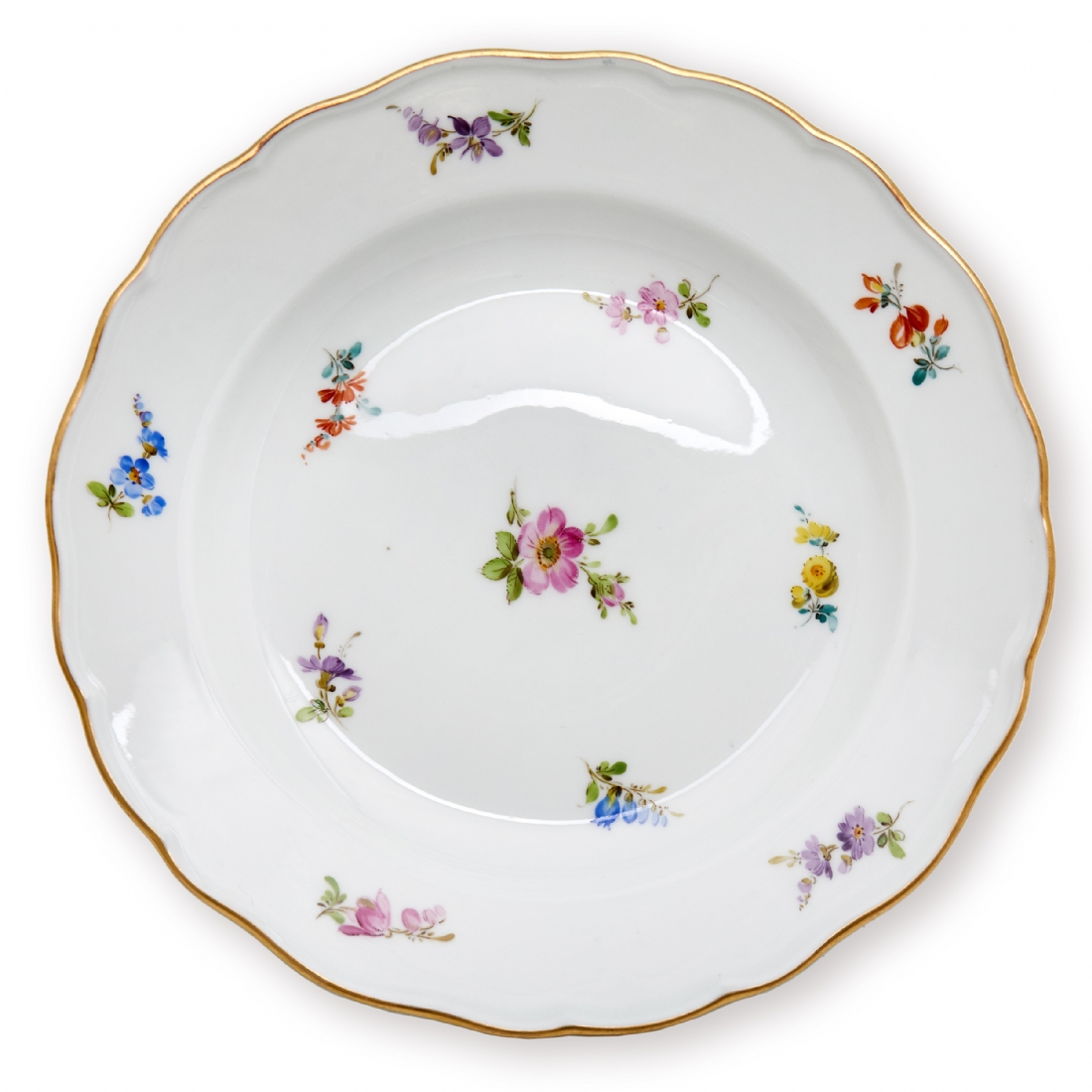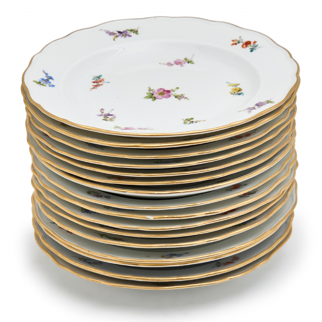 16 צלחות פורצלן גרמניות איכותית ועתיקות למנה ראשונה מתוצרת 'מייסן' (Meissen)