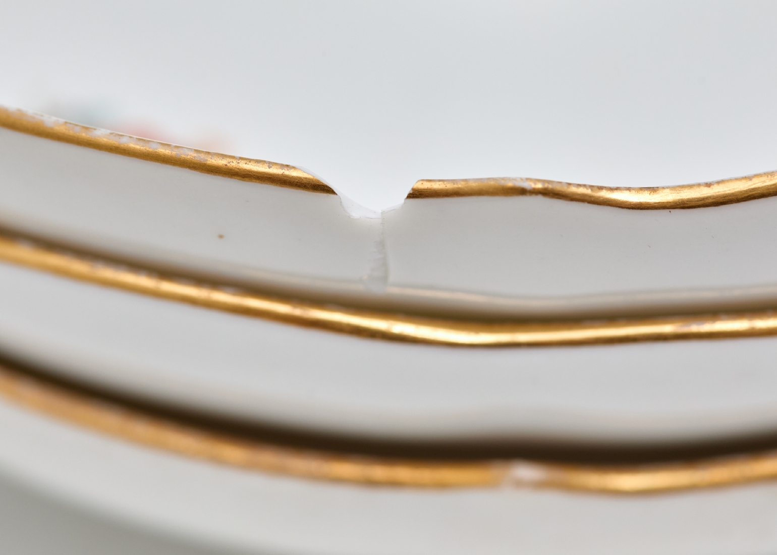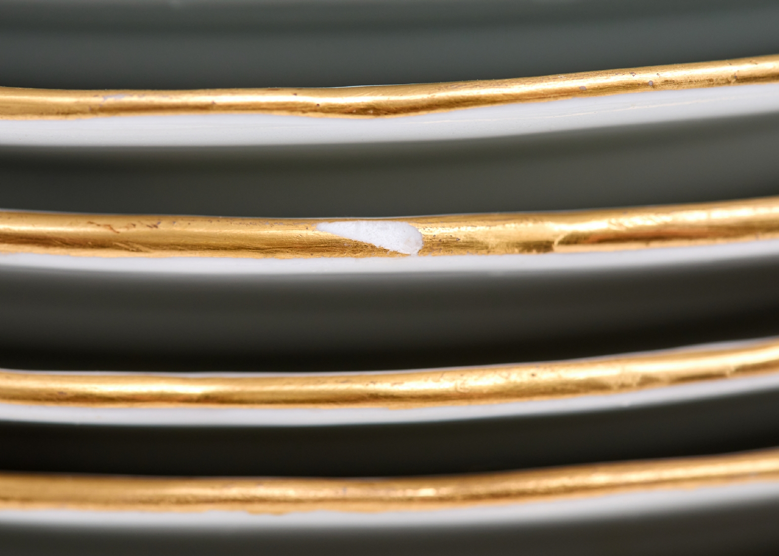 מעוטרות ציורי יד של פרחי גינה גרמנים באמייל ובזהב, חתומות
