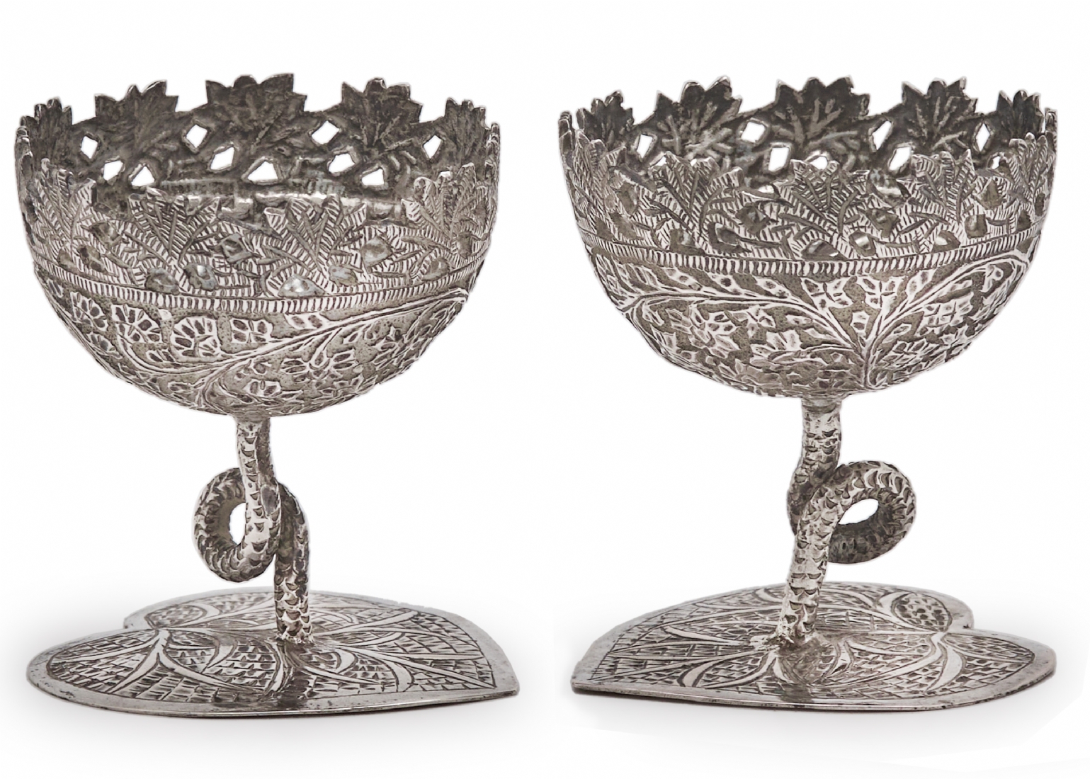 זוג כלי כסף הודים מאזור קשמיר, לא חתומים מעוטרים בעבודת ריקוע ידנית