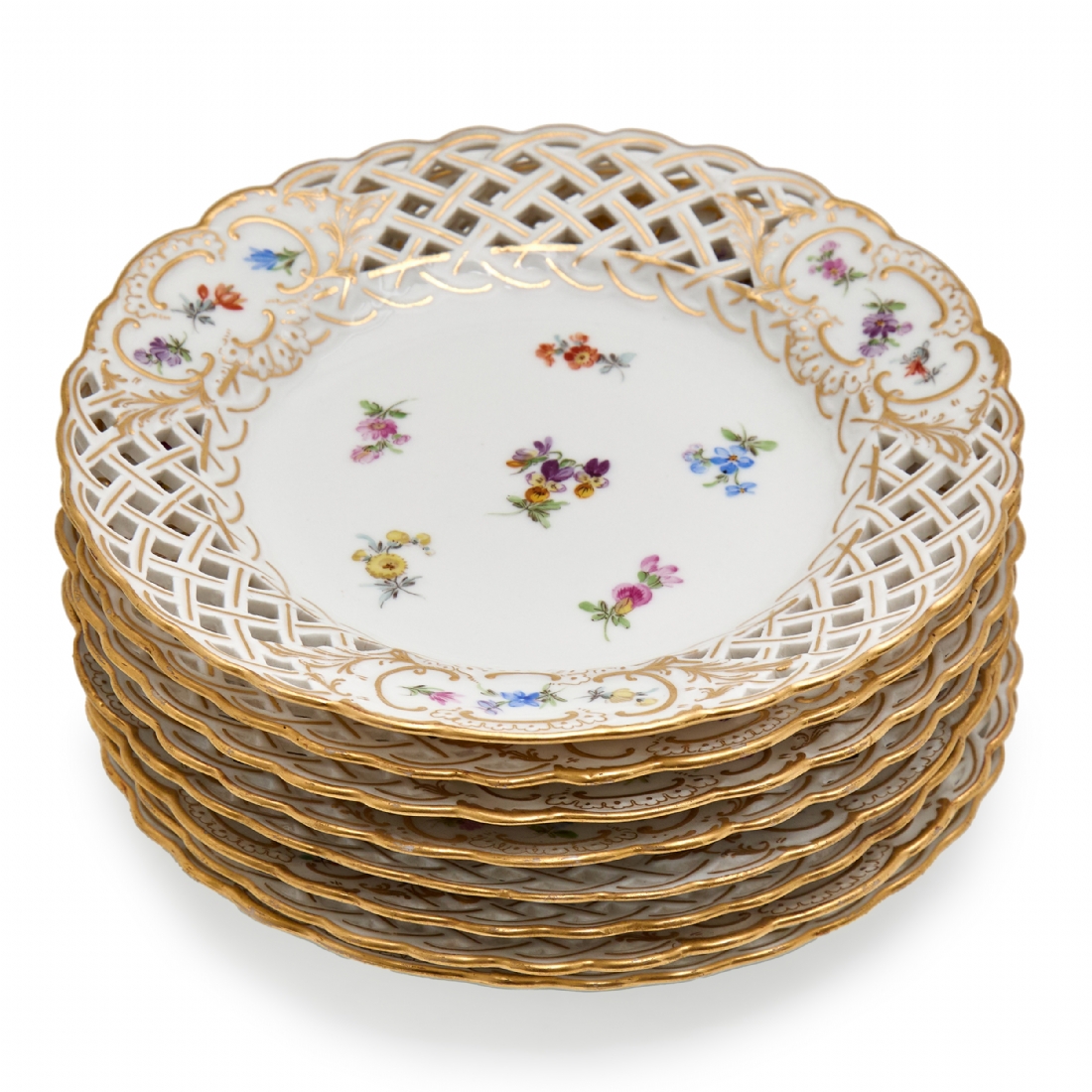 שמונה צלחות פורצלן גרמניות איכותית ועתיקות למנה ראשונה מתוצרת 'מייסן' (Meissen)