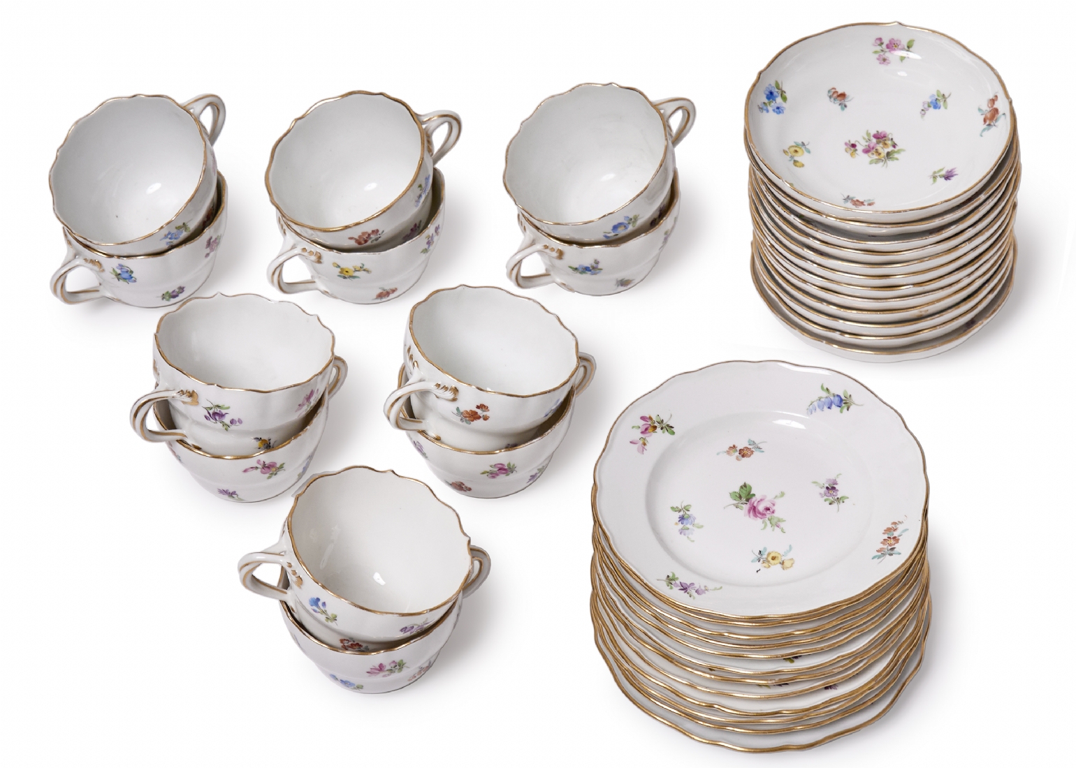 סט של 12 כוסות וצלחות פורצלן גרמניות איכותית ועתיקות מתוצרת 'מייסן'(Meissen)