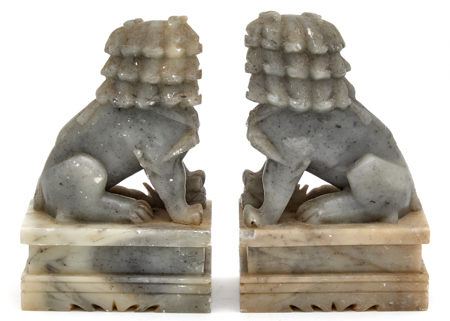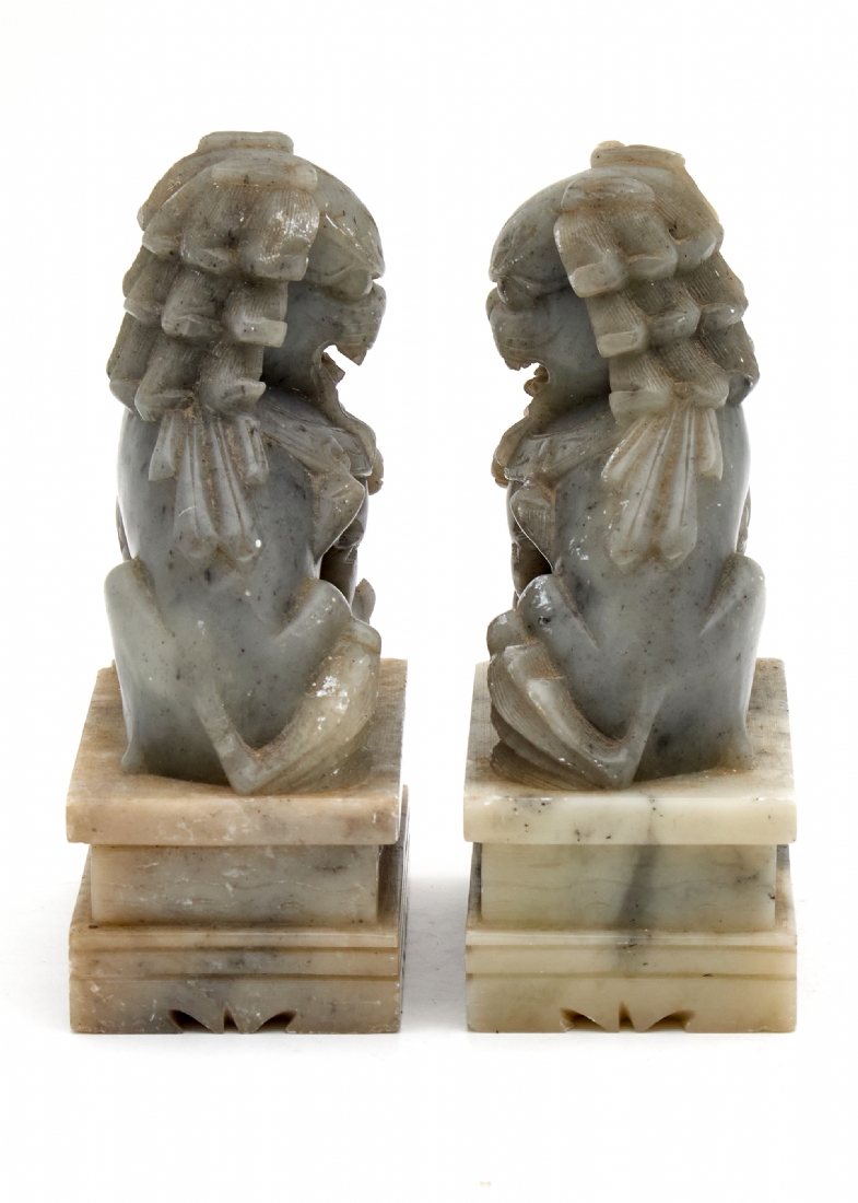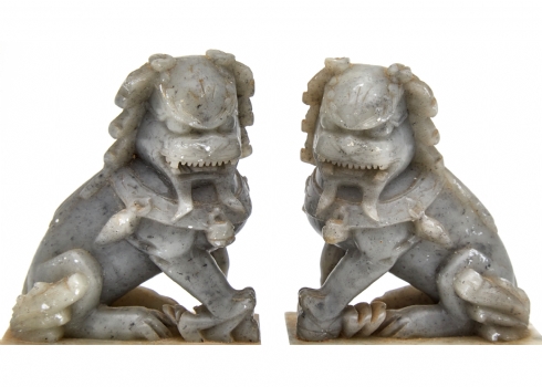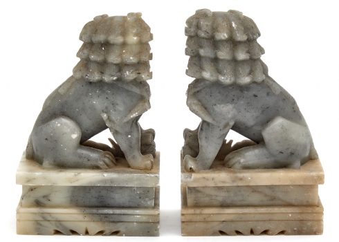 עשויים אבן סופטסטון (Soapstone), מגולפים ככלבי פו סיניםגובה: 15 ס"מפגמים מינוריים