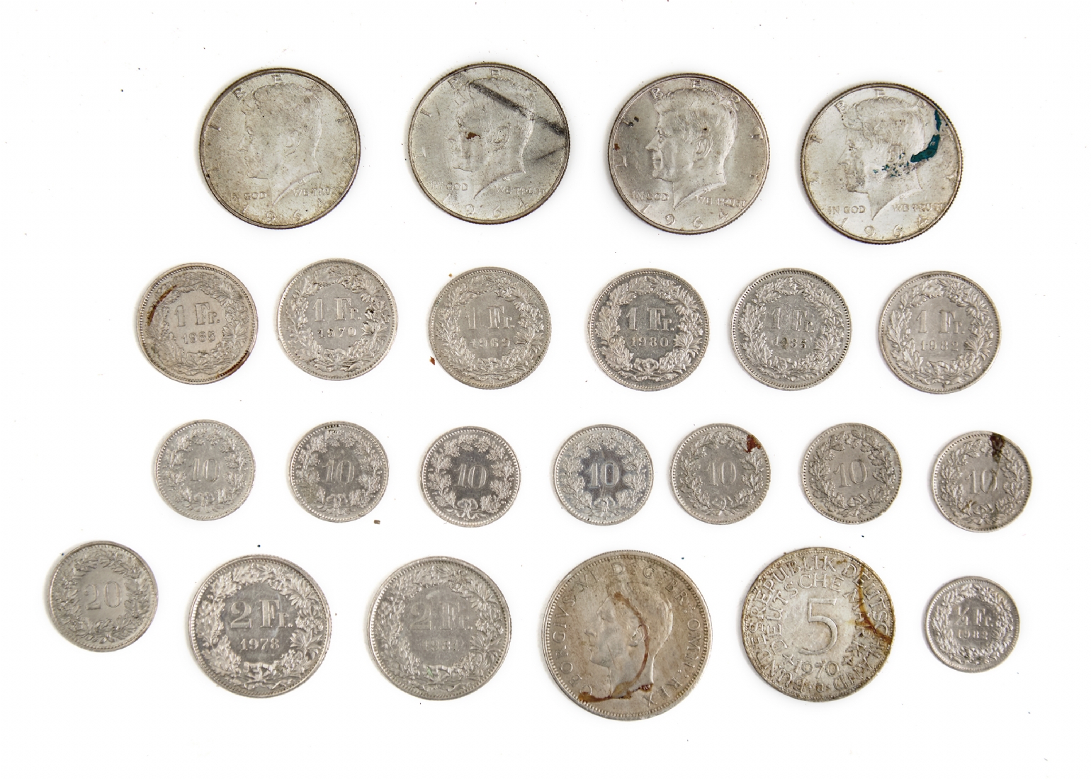 מטבעות כסף שונים, רבע דולר ארה"ב, פרנק ועוד
