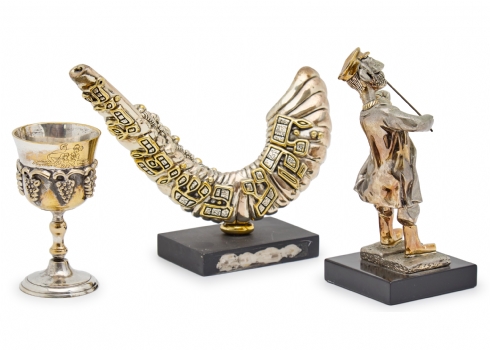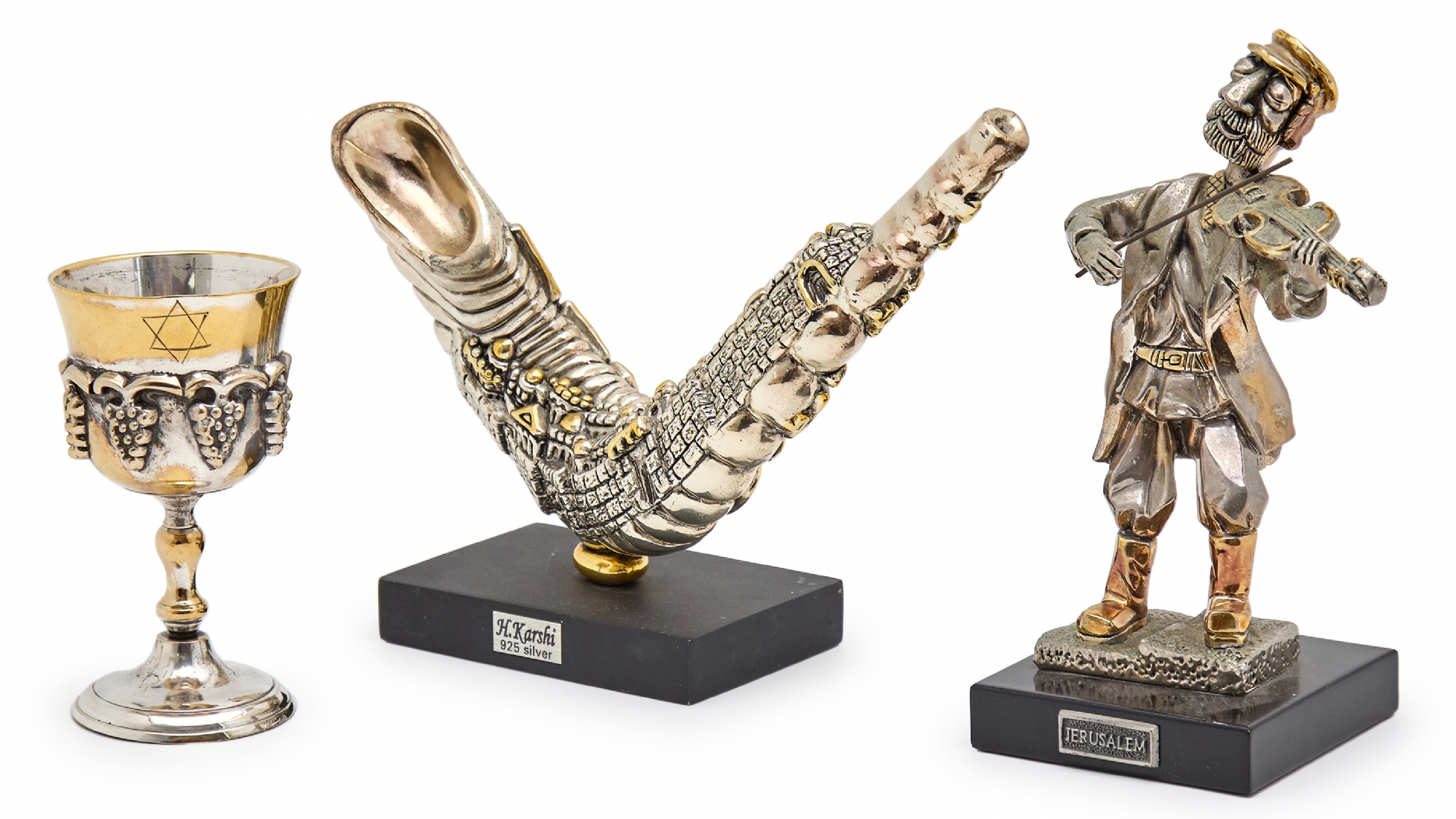 שלושה פריטים יהודיים עשויים כסף 925 אלקטרופורמינג ומתכת