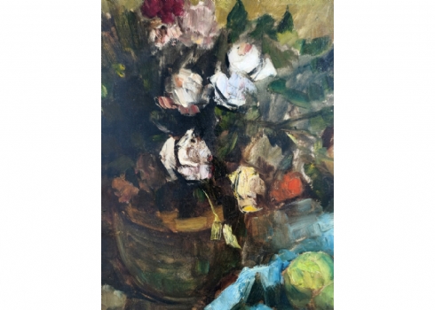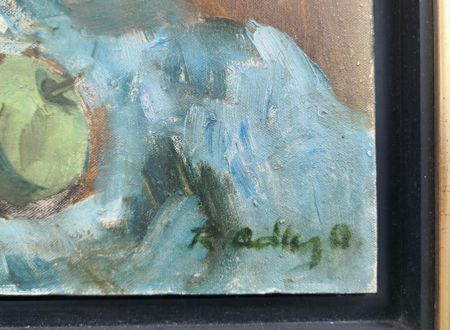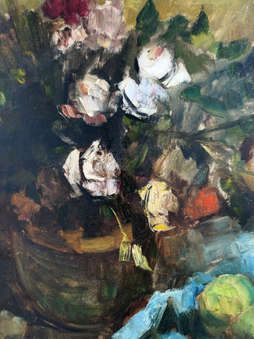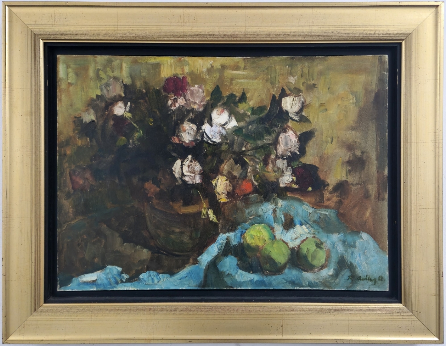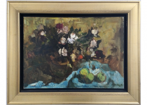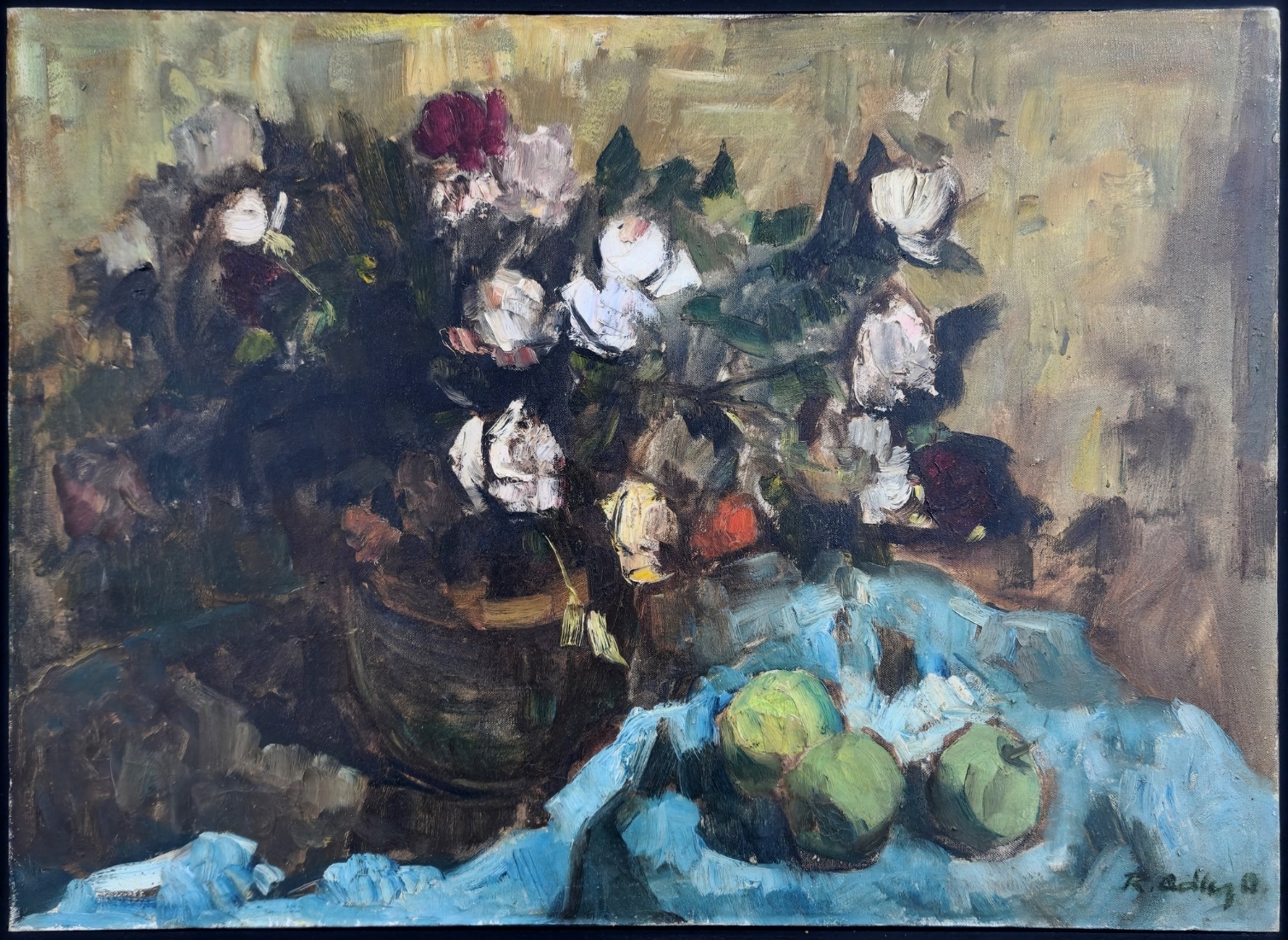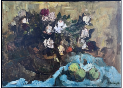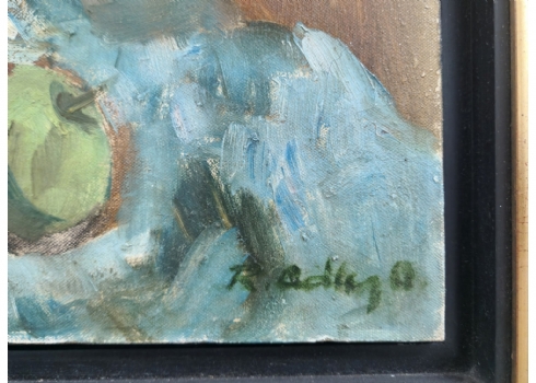 אד אדלר - 'טבע דומם עם תפוחים', שמן על בד, חתום