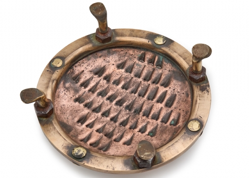 מגררת (פומפיה) עתיקה מהמאה ה-18, עשויה פליז ומעוצבת בדמות צב