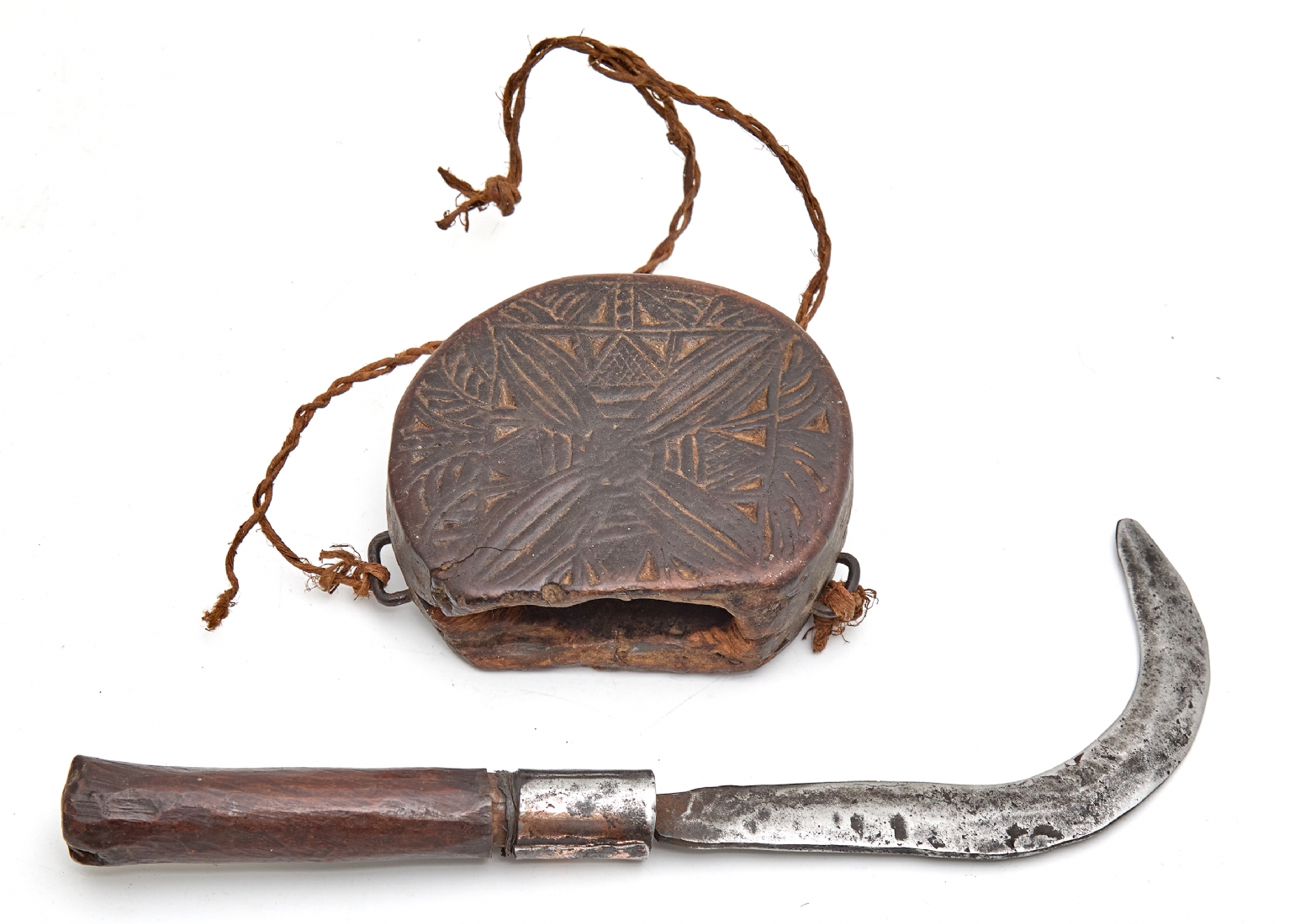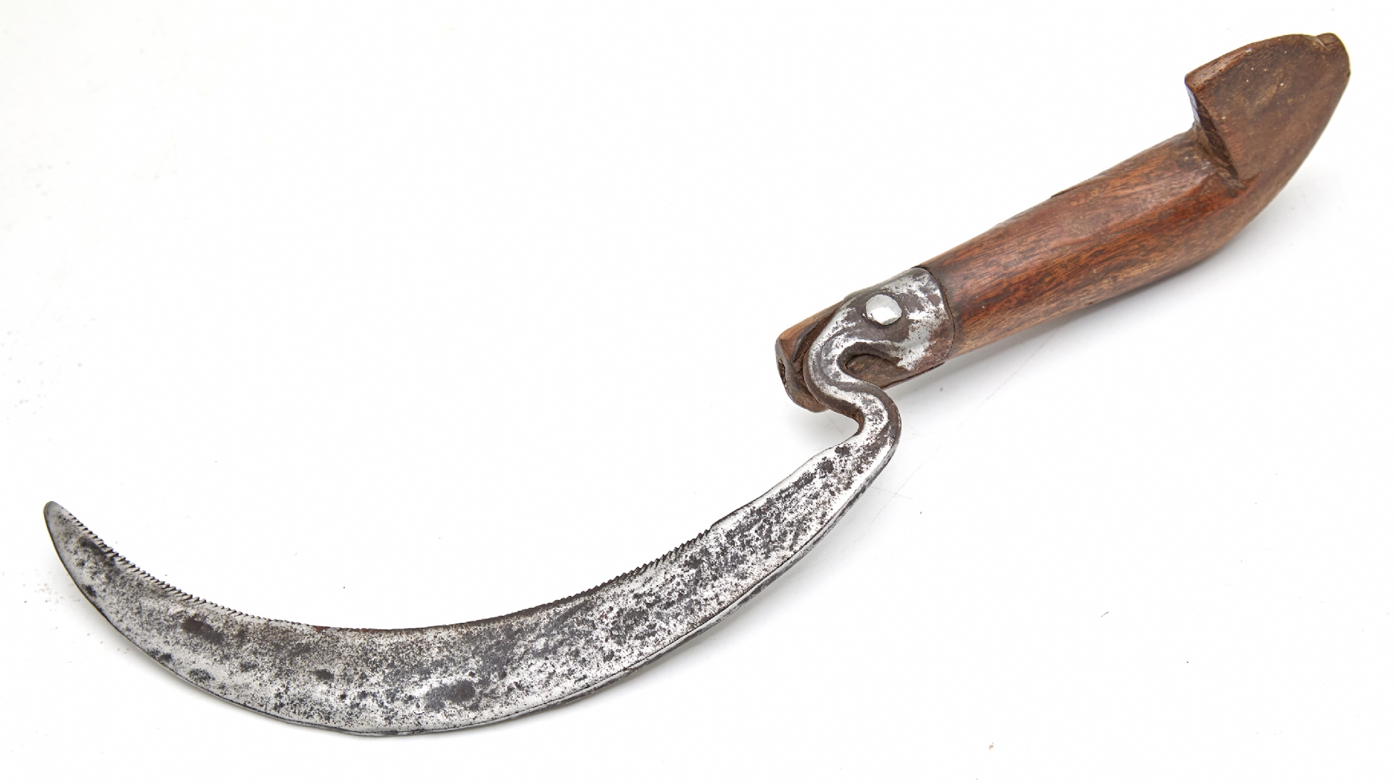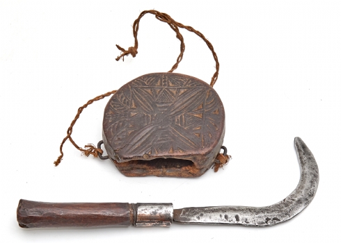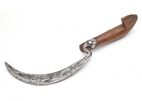מגל אורז עם נרתיק עץ מגולף – כלי לקציר