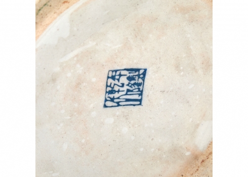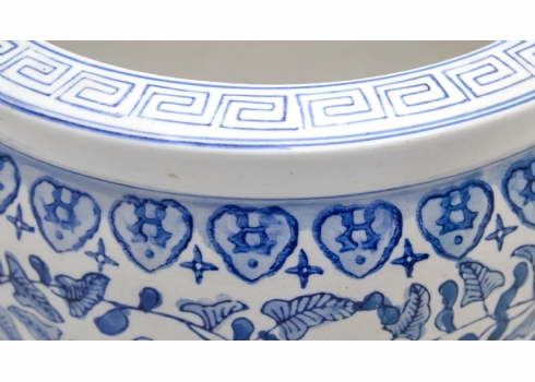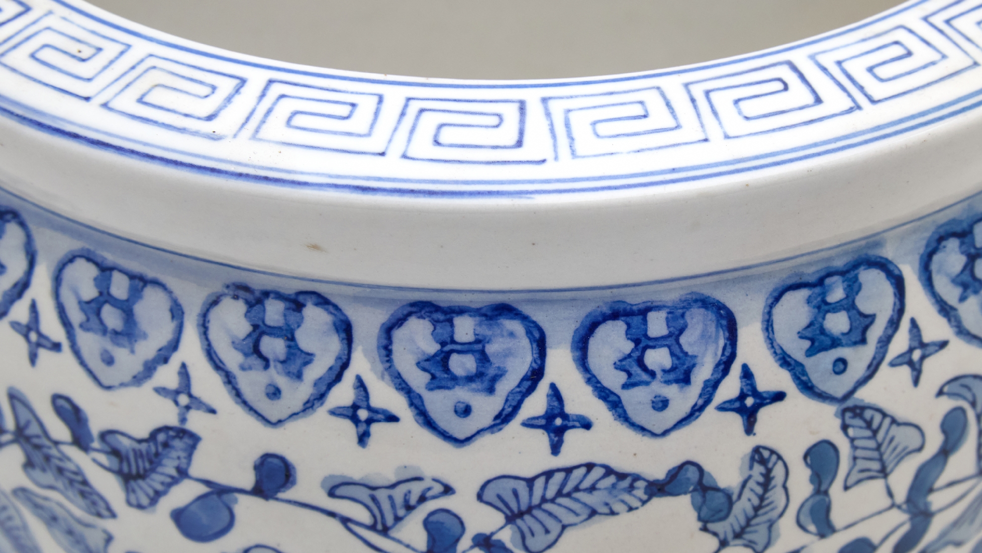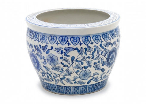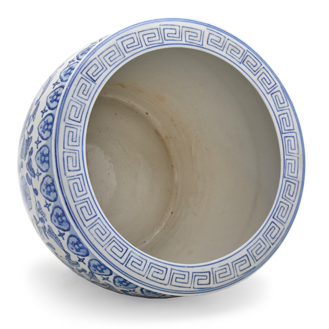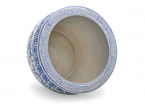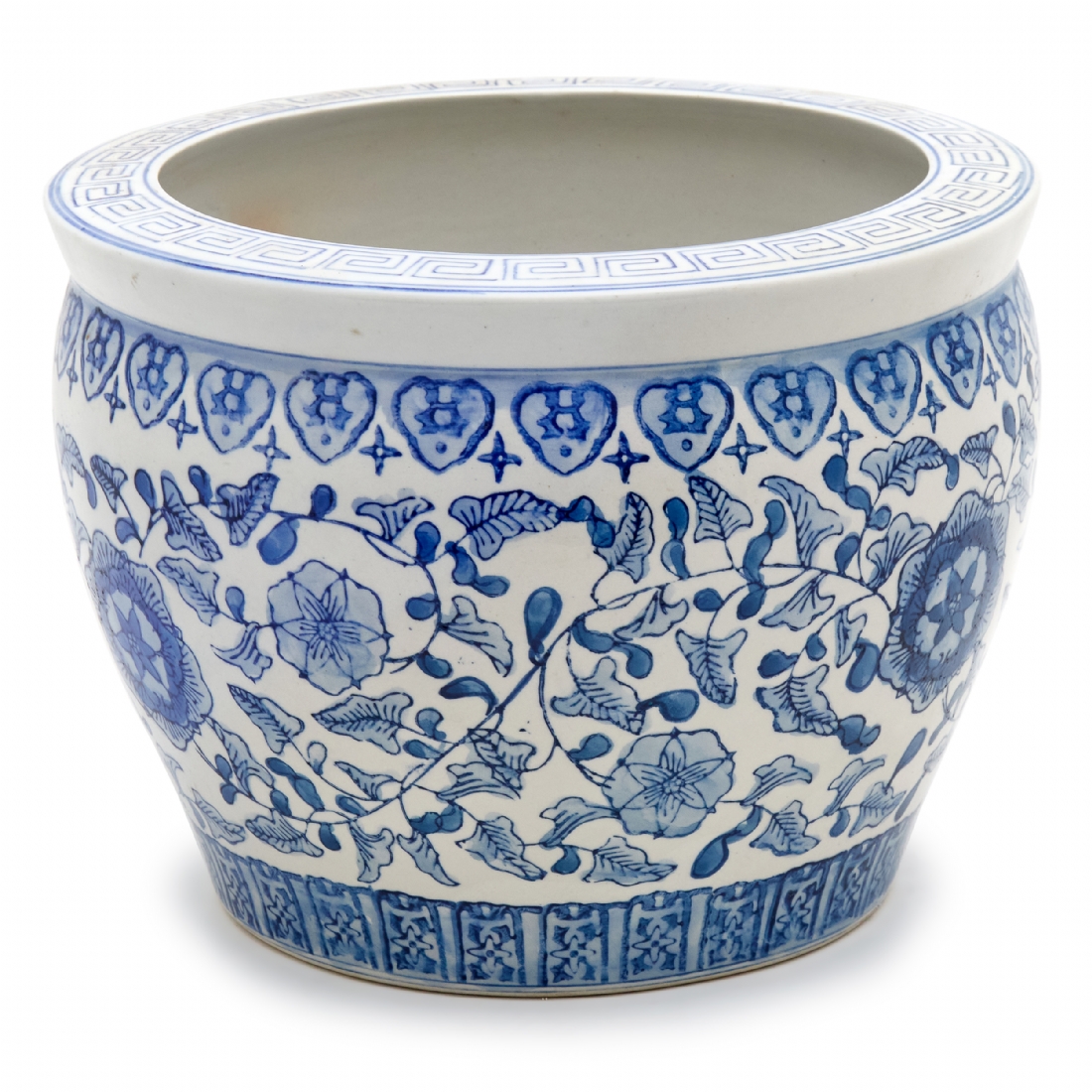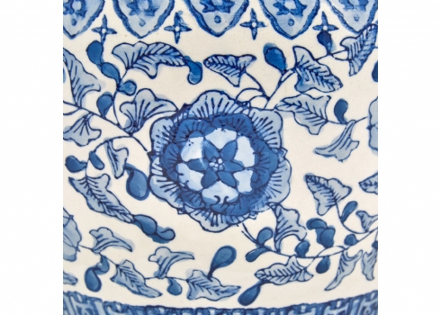 עציץ סיני דקורטיבי עשוי חרס מעוטר בכחול קובלט חתום